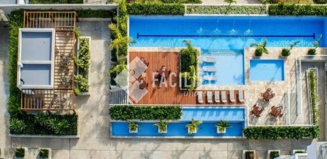 O condomínio oferece portaria 24 horas com reconhecimento facial, mini mercado e ampla área de lazer, com piscinas com raia de 25 m e infantil, deck, SPA, sauna, churrasqueira, forno de pizza, três salões de festas adulto e infantil, espaço gourmet, brinquedoteca, playground, quadra poliesportiva, academia, salão de jogos, vestiários, estacionamento para visitantes, sistema integrado de câmeras e paisagismo.