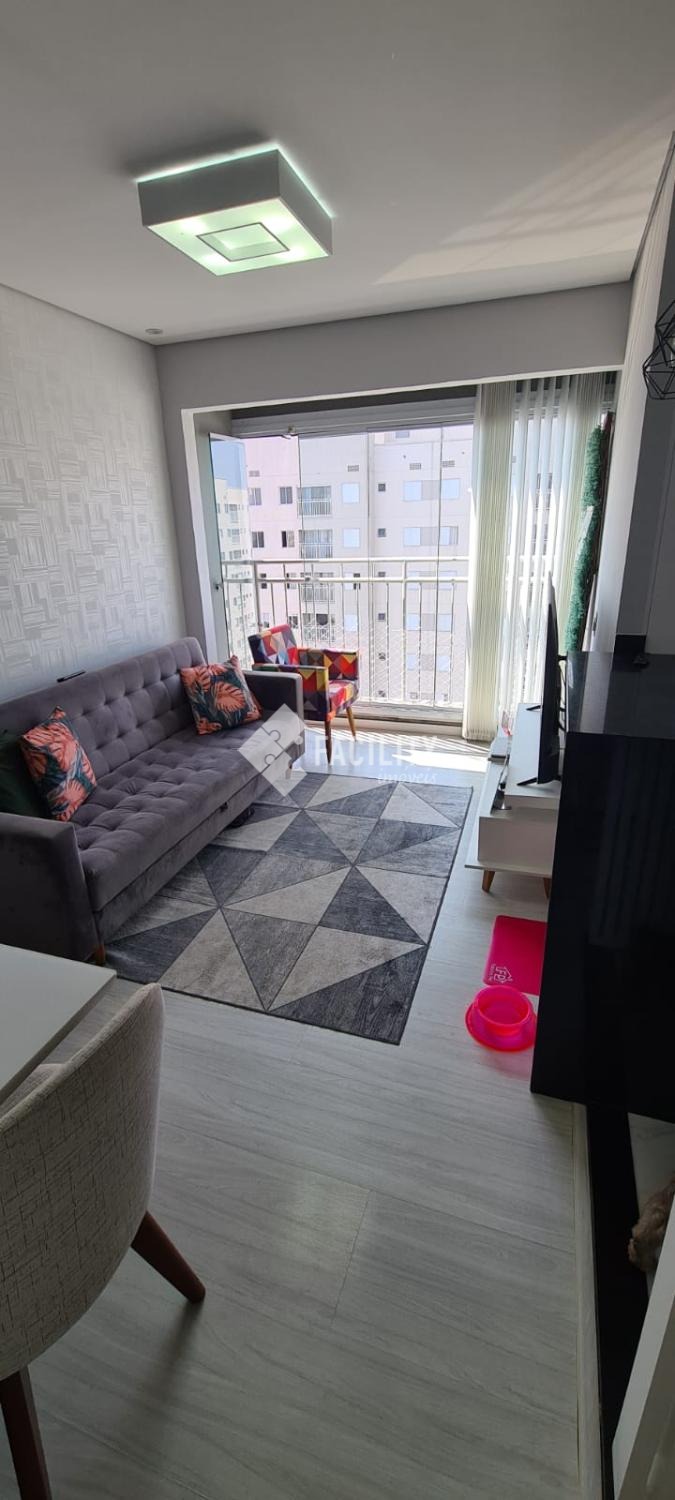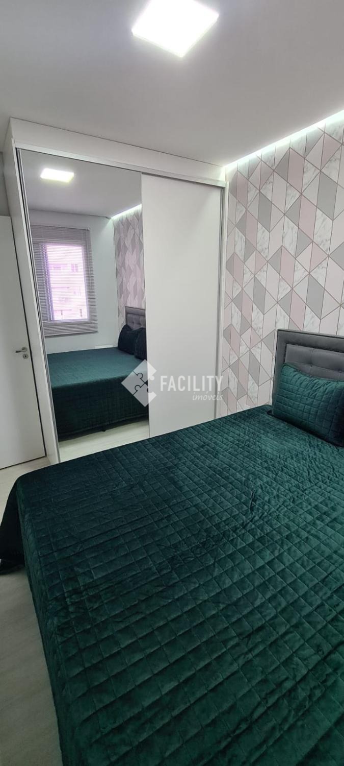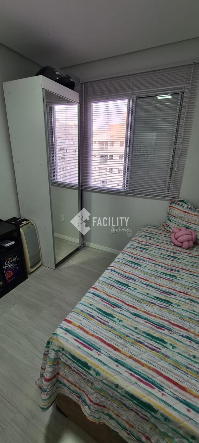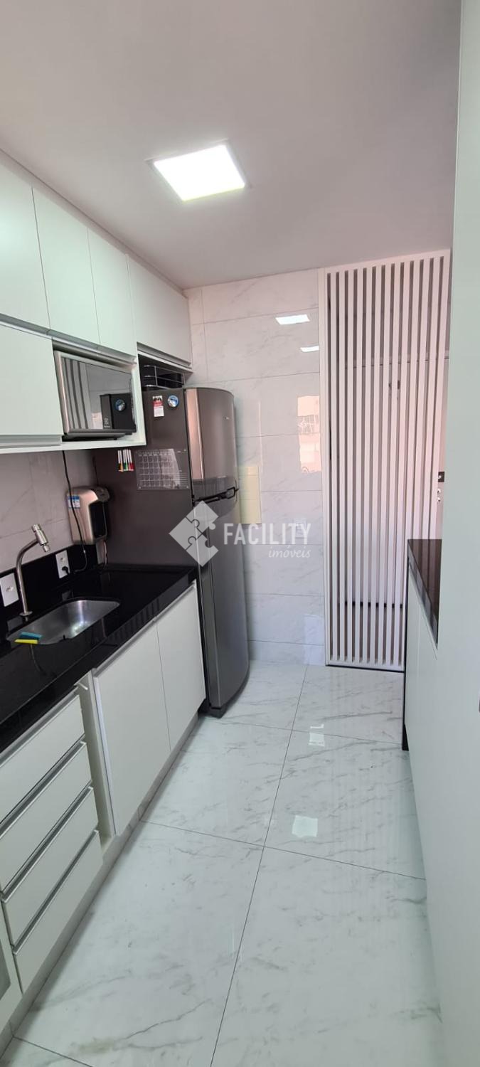 Apartamento no 13º andar, Possui sala de estar com envidraçamento de sacada com sol da manhã, 2 quartos, sendo uma suíte, cozinha americana, área de serviço e uma vaga de estacionamento.