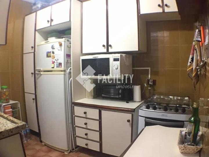 Com 2 quartos, sendo 1 com armário embutido, sala 2 ambientes, cozinha com armários, banheiro social com blindex, área de serviço e 1 vagas de garagem coberta.