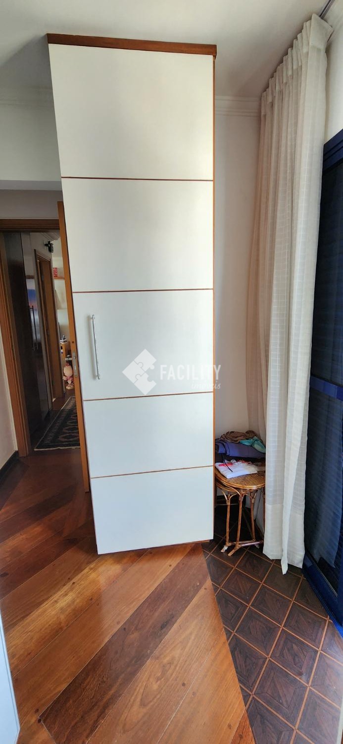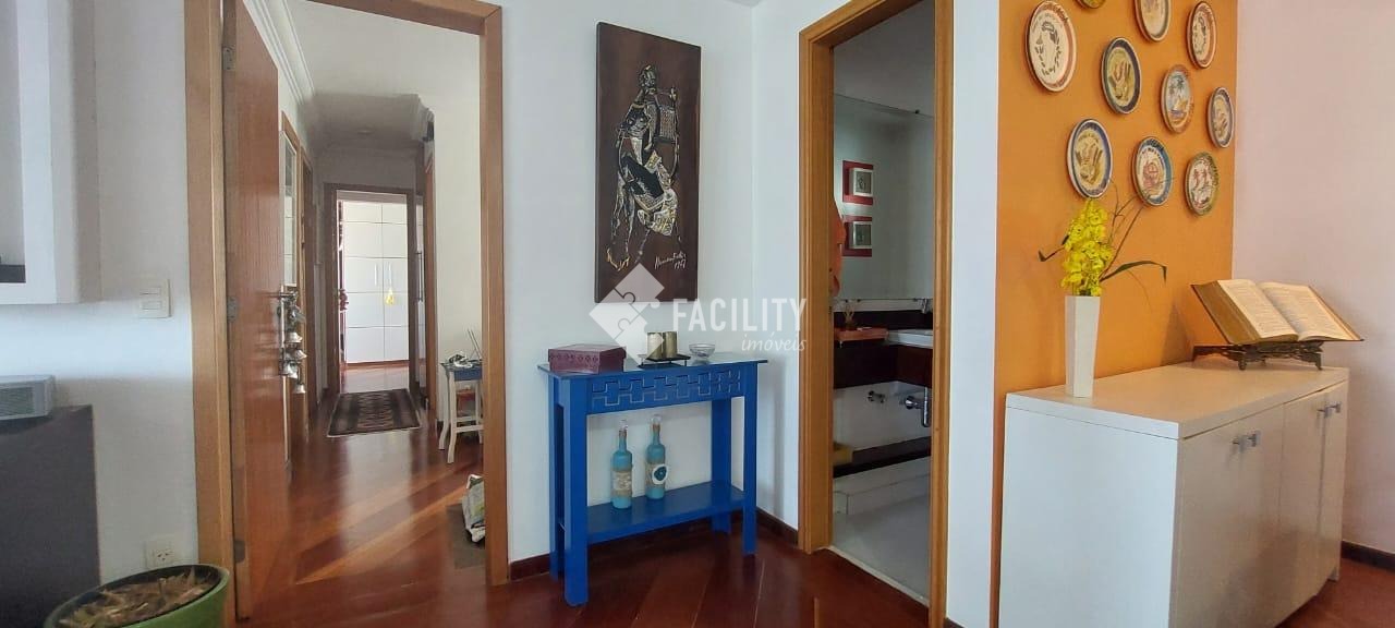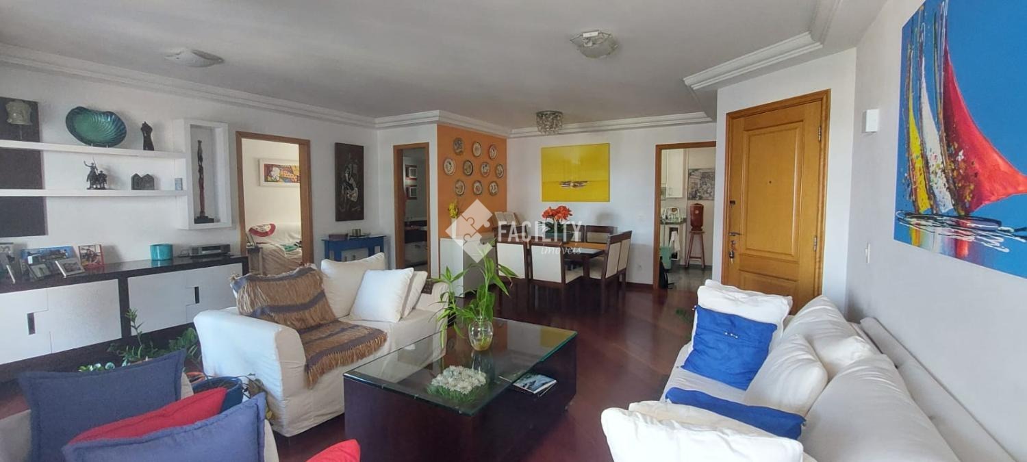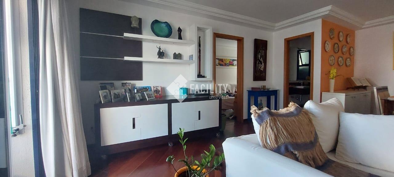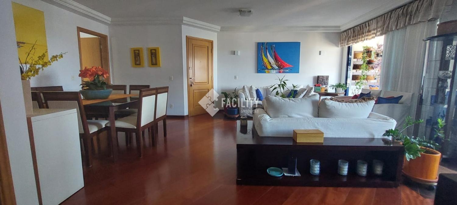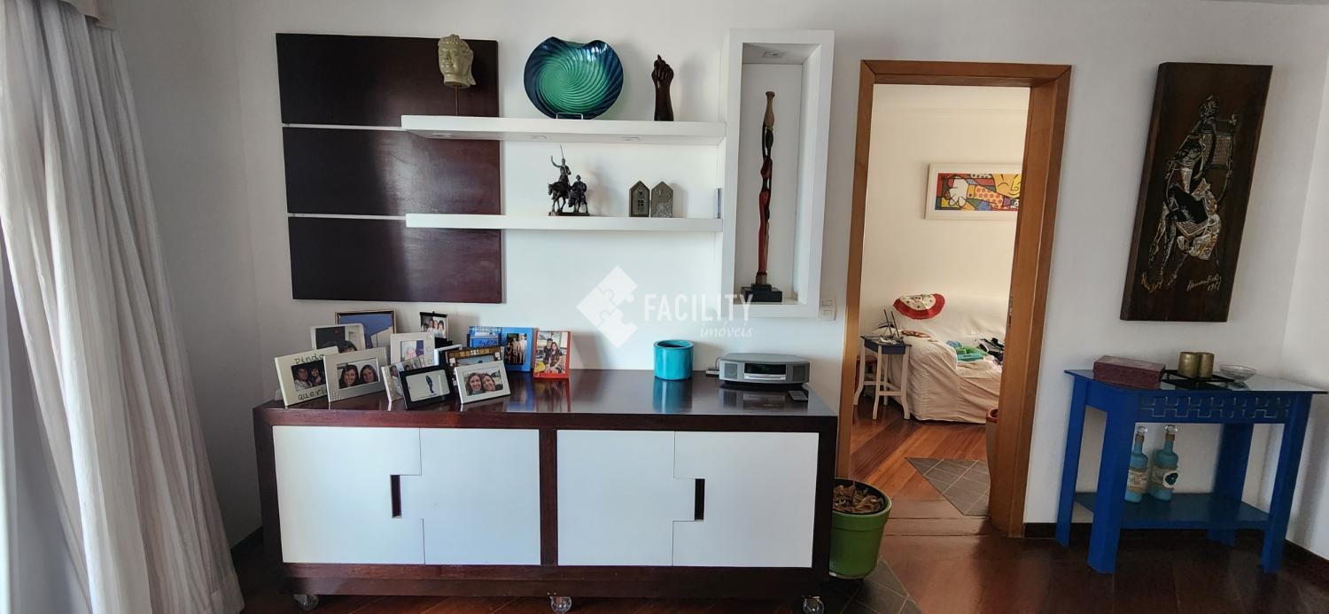 Amplo living para 3 ambientes, varanda fechada com cortina de vidro, lavabo, 4 quartos planejados (1 suíte c/ closet e sacada), um deles convertido em sala de TV, banheiro social, cozinha planejada, área de serviço com despensa e banheiro. Entrada de serviço independente. Acabamento de primeira, decoração de muito bom gosto com ambientes iluminados e arejados. 2 vagas de garagem no subsolo com depósito. Água inclusa no valor do condomínio e portaria 24h.