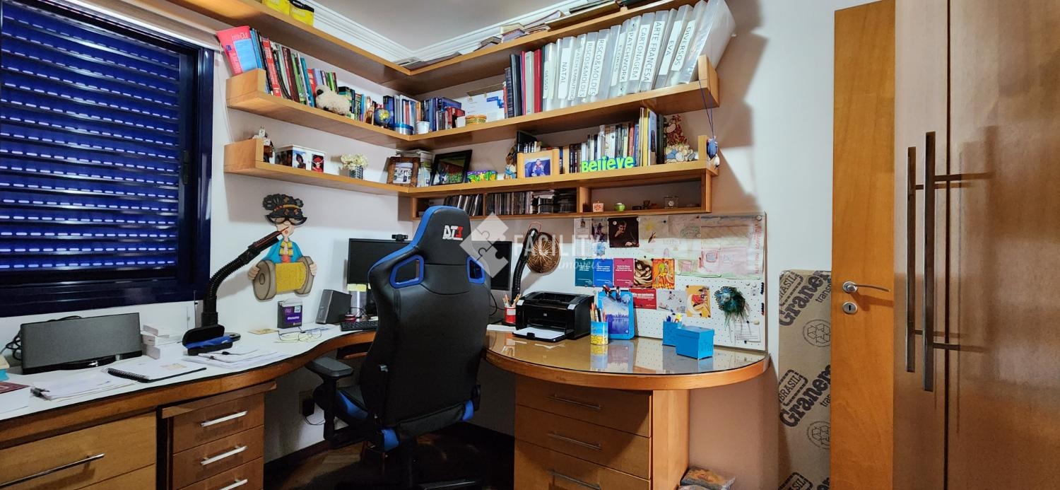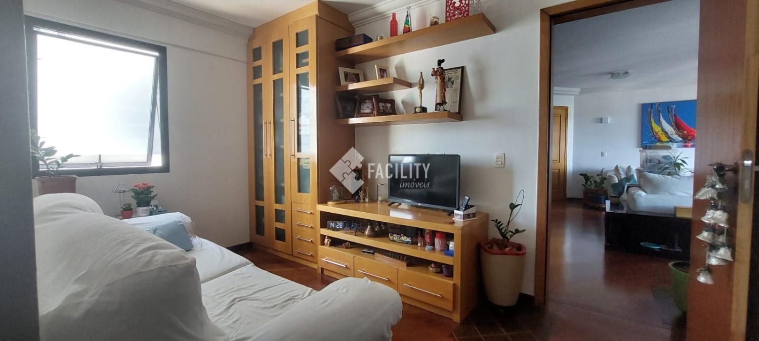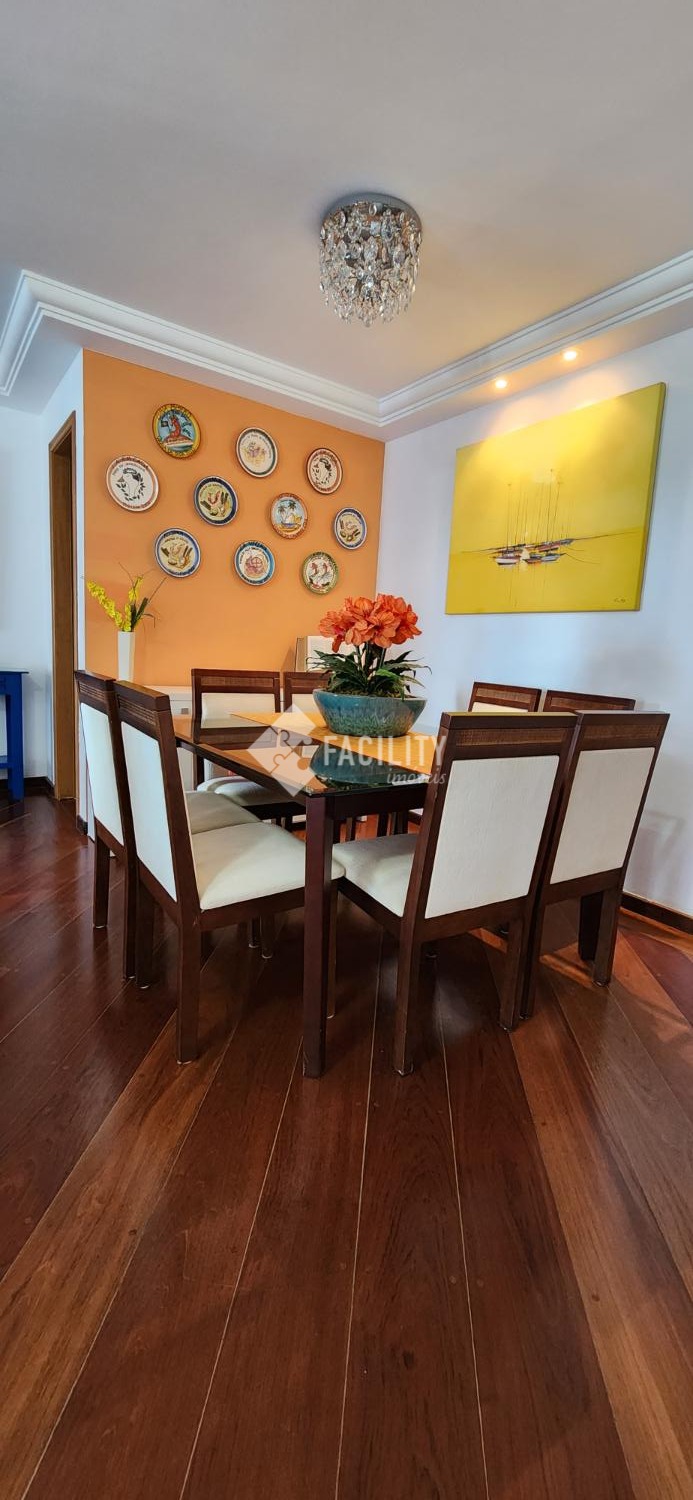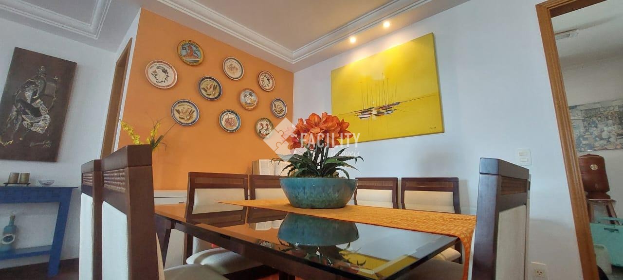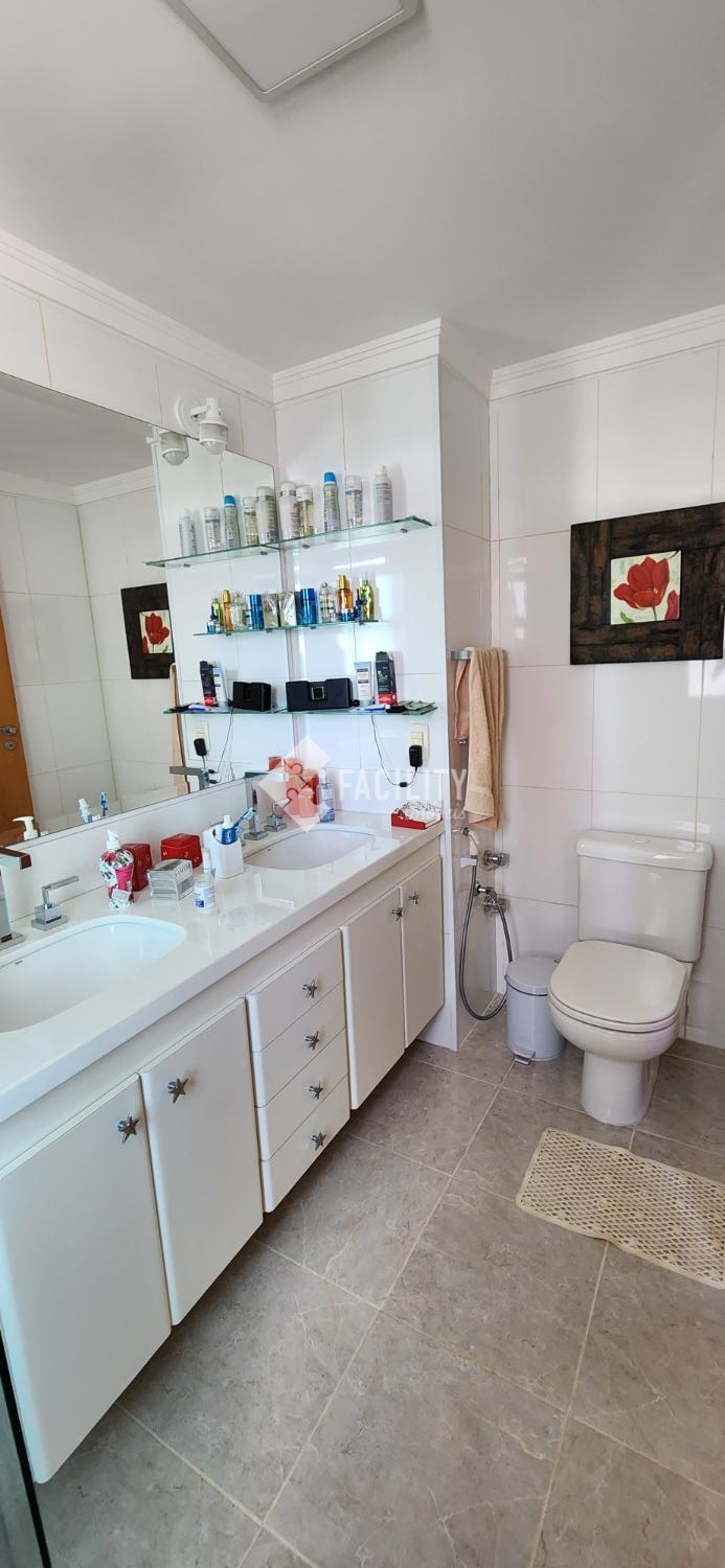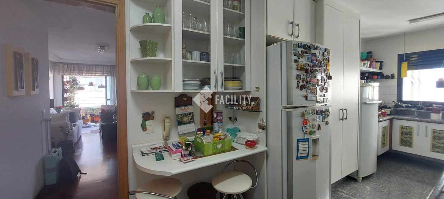 Amplo living para 3 ambientes, varanda fechada com cortina de vidro, lavabo, 4 quartos planejados (1 suíte c/ closet e sacada), um deles convertido em sala de TV, banheiro social, cozinha planejada, área de serviço com despensa e banheiro. Entrada de serviço independente. Acabamento de primeira, decoração de muito bom gosto com ambientes iluminados e arejados. 2 vagas de garagem no subsolo com depósito. Água inclusa no valor do condomínio e portaria 24h.