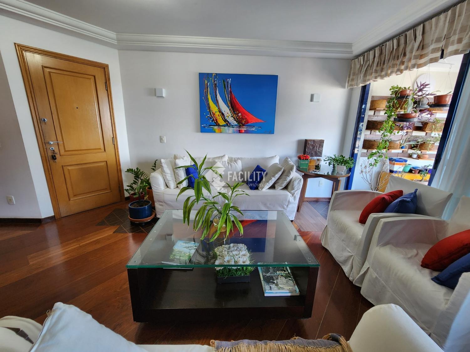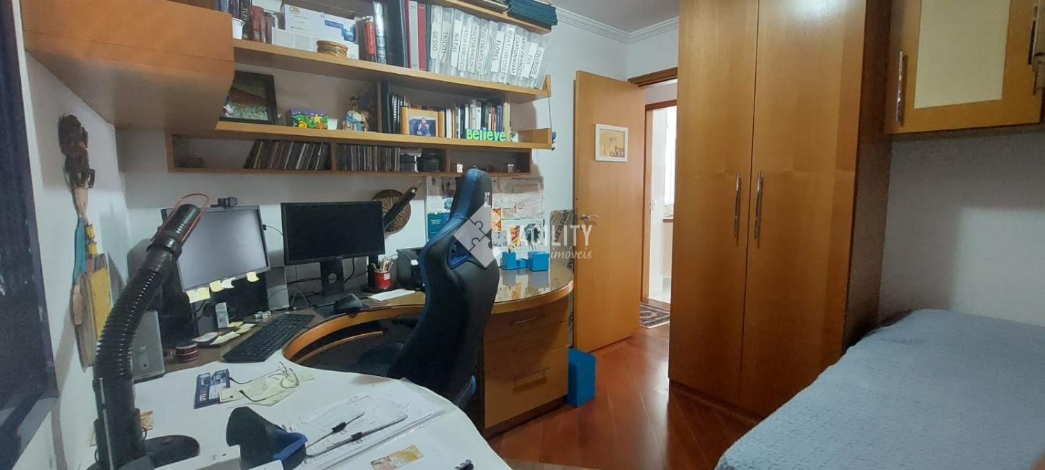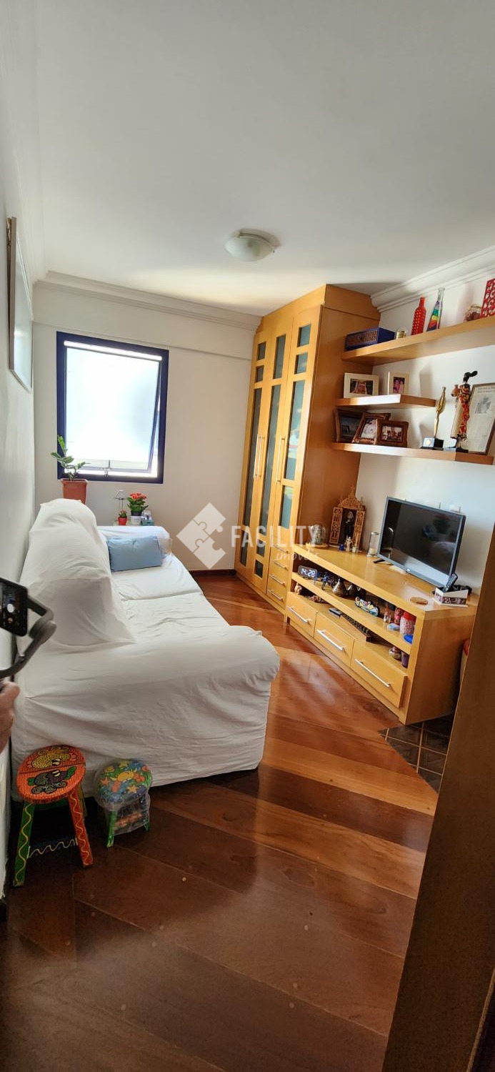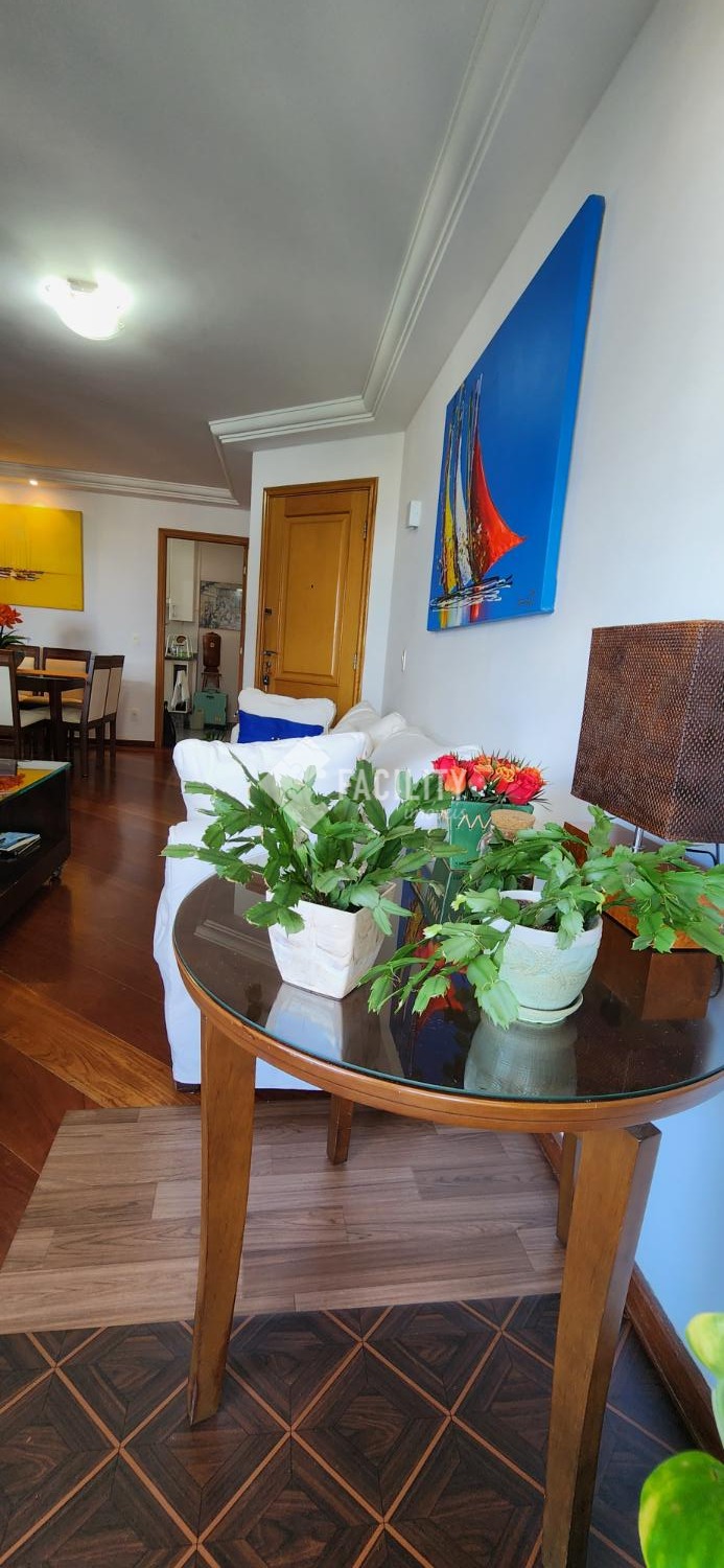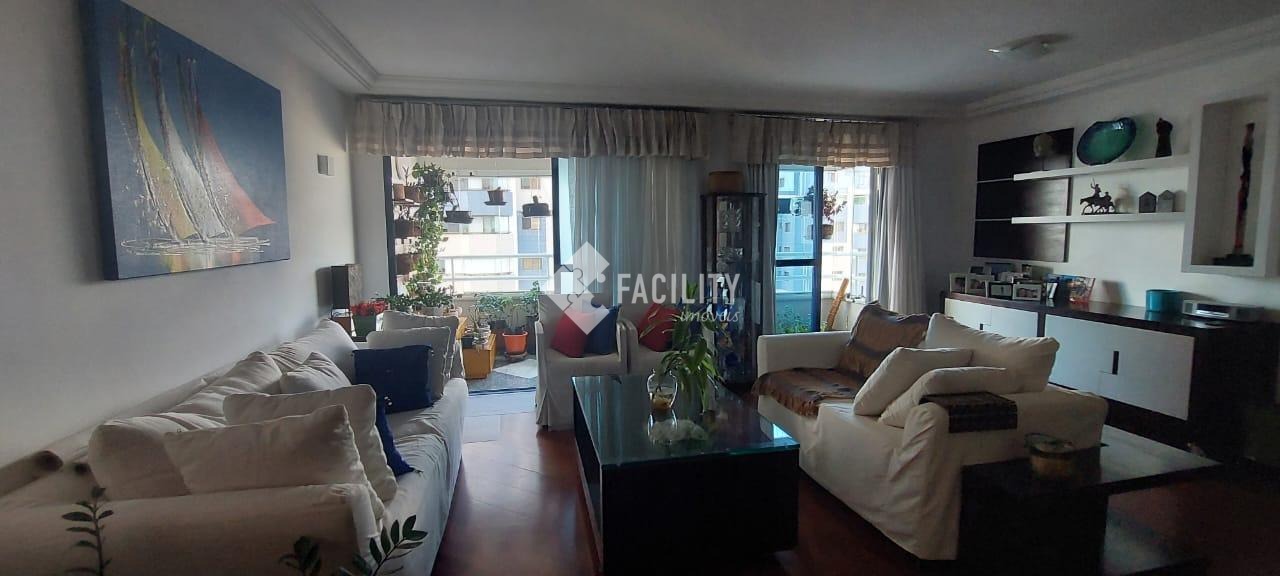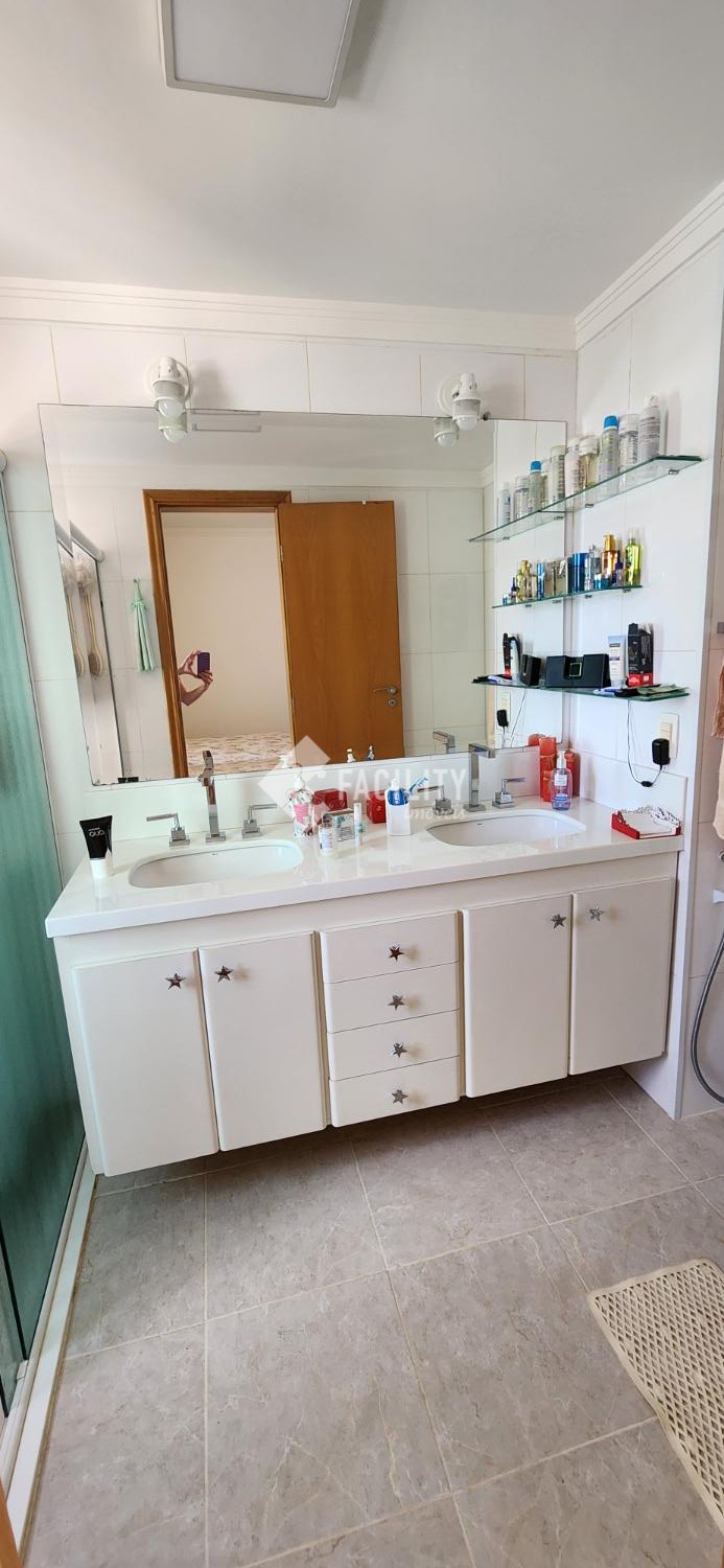 Amplo living para 3 ambientes, varanda fechada com cortina de vidro, lavabo, 4 quartos planejados (1 suíte c/ closet e sacada), um deles convertido em sala de TV, banheiro social, cozinha planejada, área de serviço com despensa e banheiro. Entrada de serviço independente. Acabamento de primeira, decoração de muito bom gosto com ambientes iluminados e arejados. 2 vagas de garagem no subsolo com depósito. Água inclusa no valor do condomínio e portaria 24h.