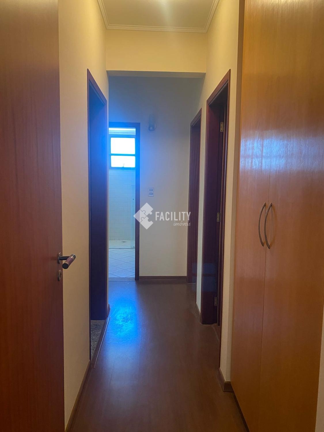 Apartamento com armários planejados em todos os cômodos, incluindo armário no corredor e área de serviço.