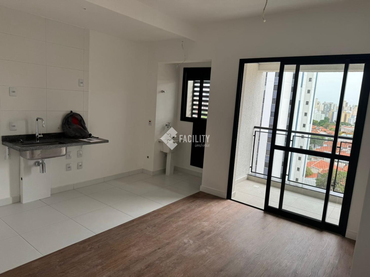 Apartamento com um quarto, uma sala ampla com sacada, cozinha, área de serviço, uma banheiro. Condomínio novo e bem localizado, no coração do Taquaral, próximo a diversos comércios.
