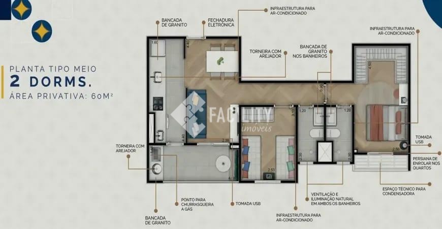 Apartamento à venda no Residencial Algarve, em Campinas/SP, com entrega prevista para novembro de 2025. O imóvel possui 60 m² muito bem distribuídos, com 2 dormitórios, sendo 1 suíte, varanda com vista privilegiada, 1 vaga de garagem e está localizado no último andar, proporcionando mais privacidade e tranquilidade. Ideal para quem busca conforto, modernidade e excelente aproveitamento dos espaços. O condomínio é completo e oferece piscina adulto e infantil, espaço gourmet com churrasqueira, academia equipada, coworking, brinquedoteca, playground, pet place e portaria 24 horas. O residencial está próximo ao Shopping Parque Dom Pedro, Galleria, faculdades e a uma ampla variedade de comércios e serviços da região.
