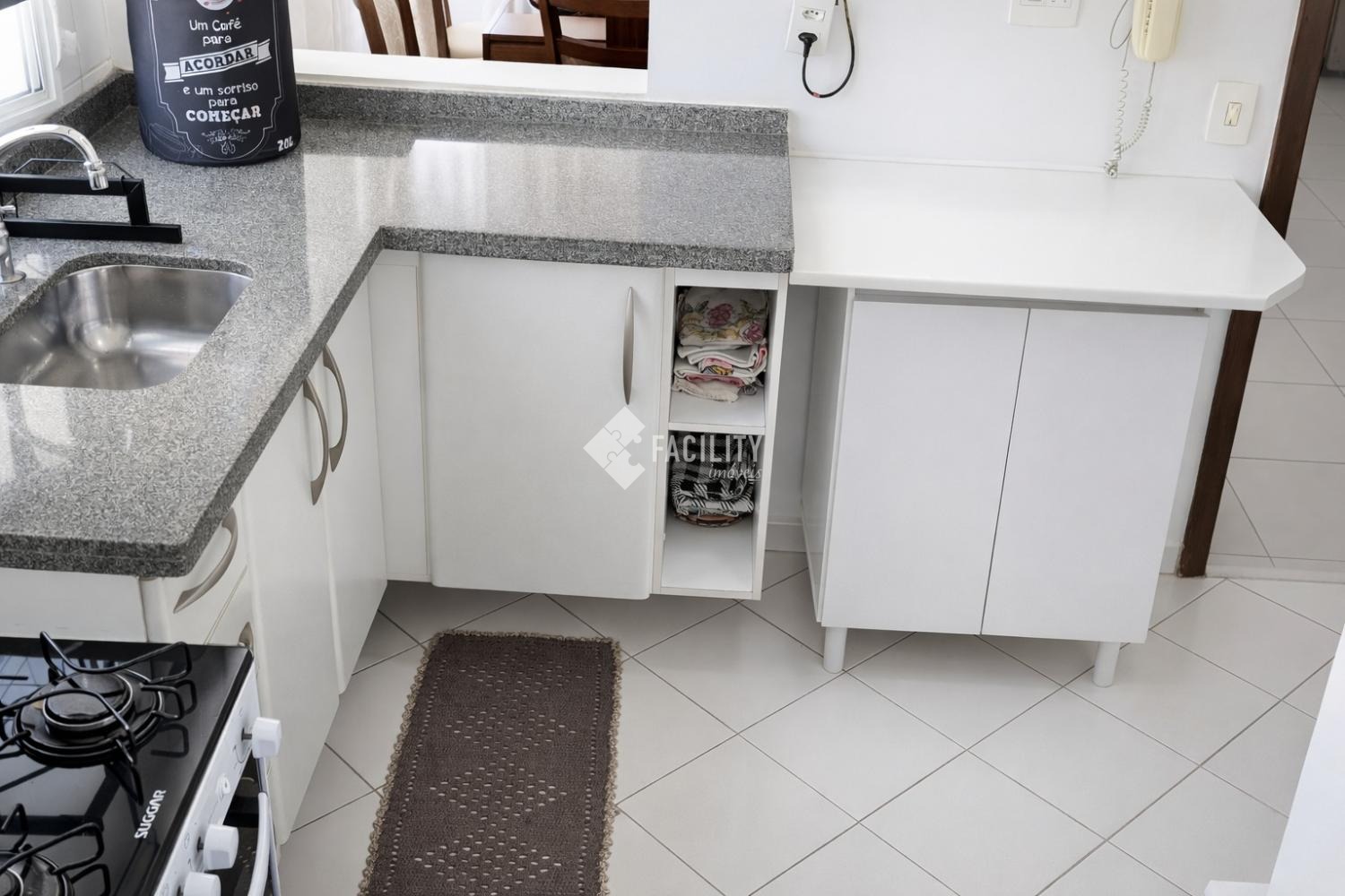 Moveis planejados na cozinha e nos 2 quartos, o terceiro quarto tem guarda-roupa porém não é planejado.