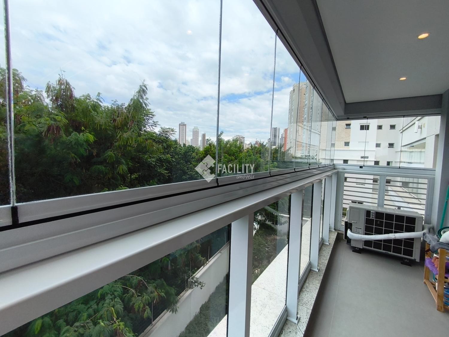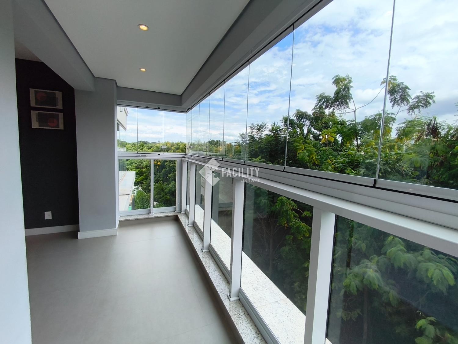 Varanda espacosa com sol da manha e vista livre