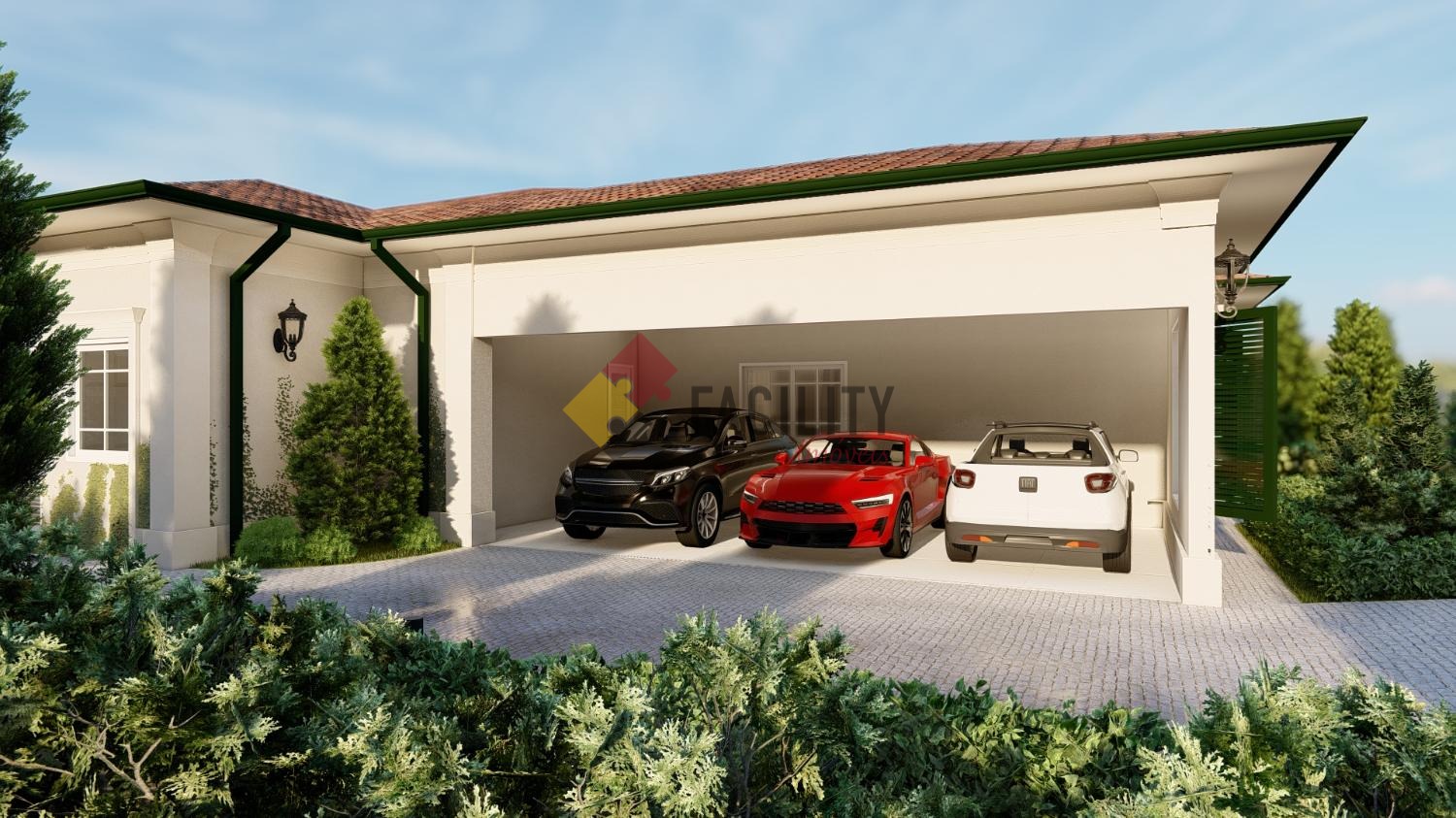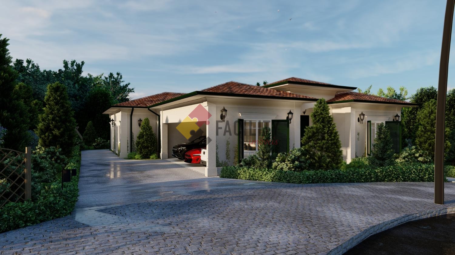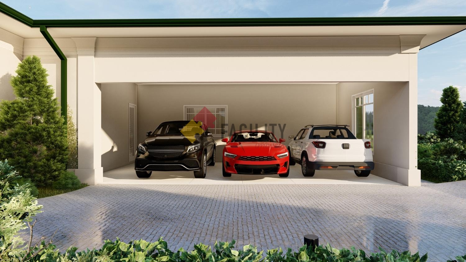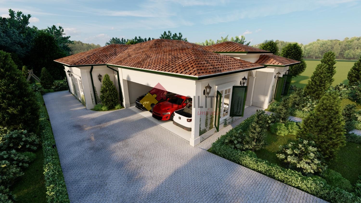 Ao chegar, você será recebido por uma espaçosa garagem para oito automóveis, todos cobertos, proporcionando praticidade e segurança para os veículos da família e convidados. Ao adentrar a casa, a imponência da sala com pé direito duplo impressiona, inundando o ambiente com luz natural e criando uma atmosfera de grandiosidade.