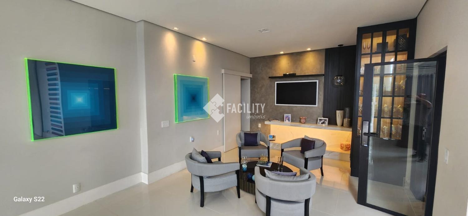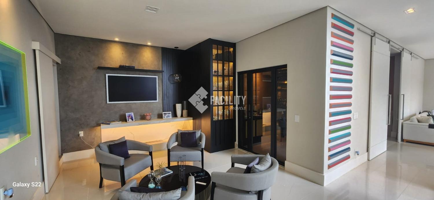 Arquitetura moderna e elegante, com acabamentos de alto padrão em mármore, madeira e vidro.