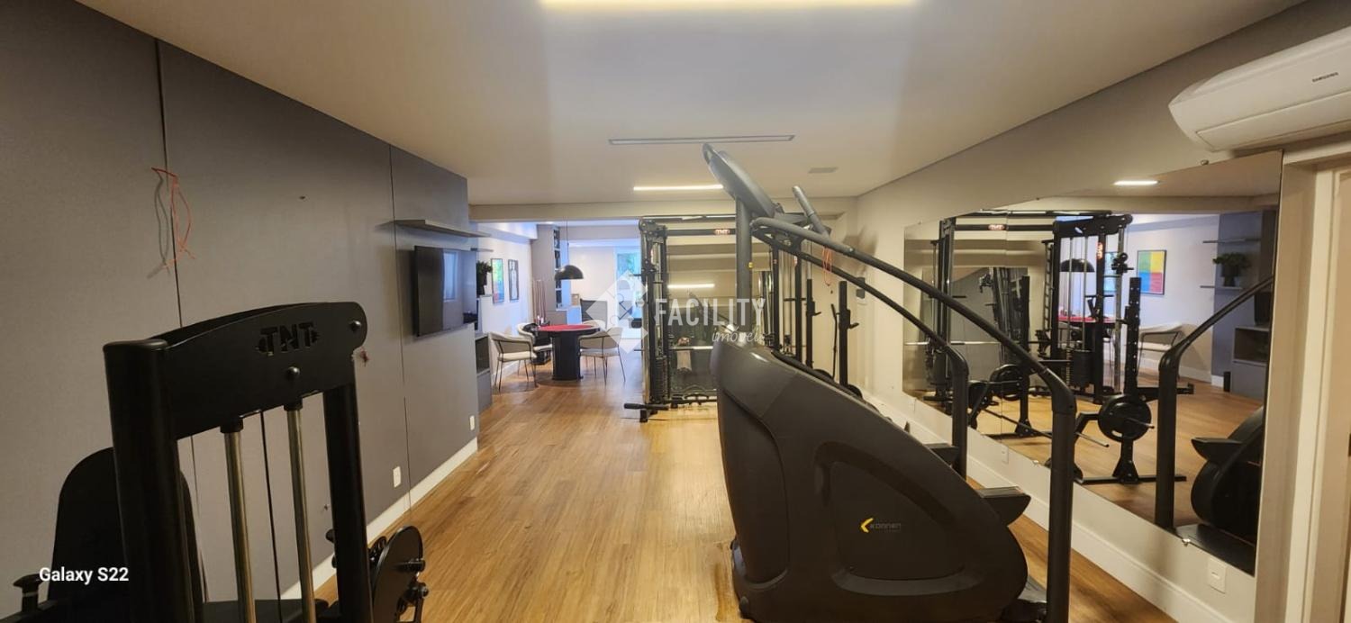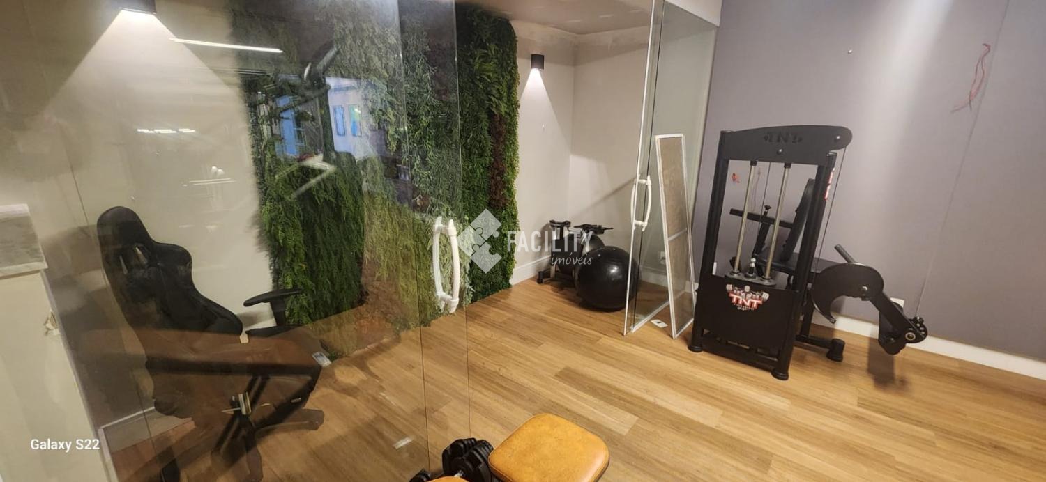 Academia climatizada com equipamentos de última geração e vista panorâmica para a área verde.