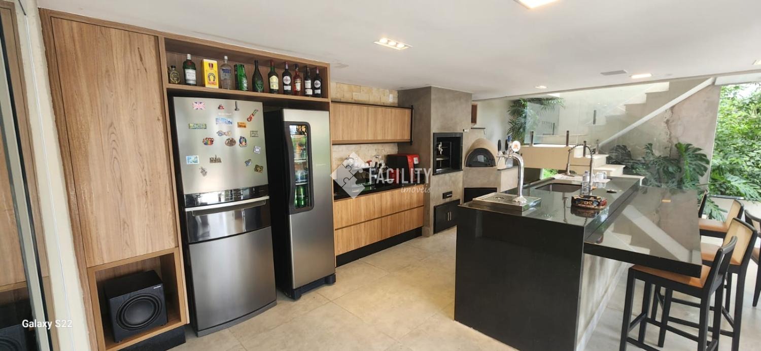 Área gourmet completa com churrasqueira, forno de pizza e chopeira profissional, ideal para receber amigos e familiares.