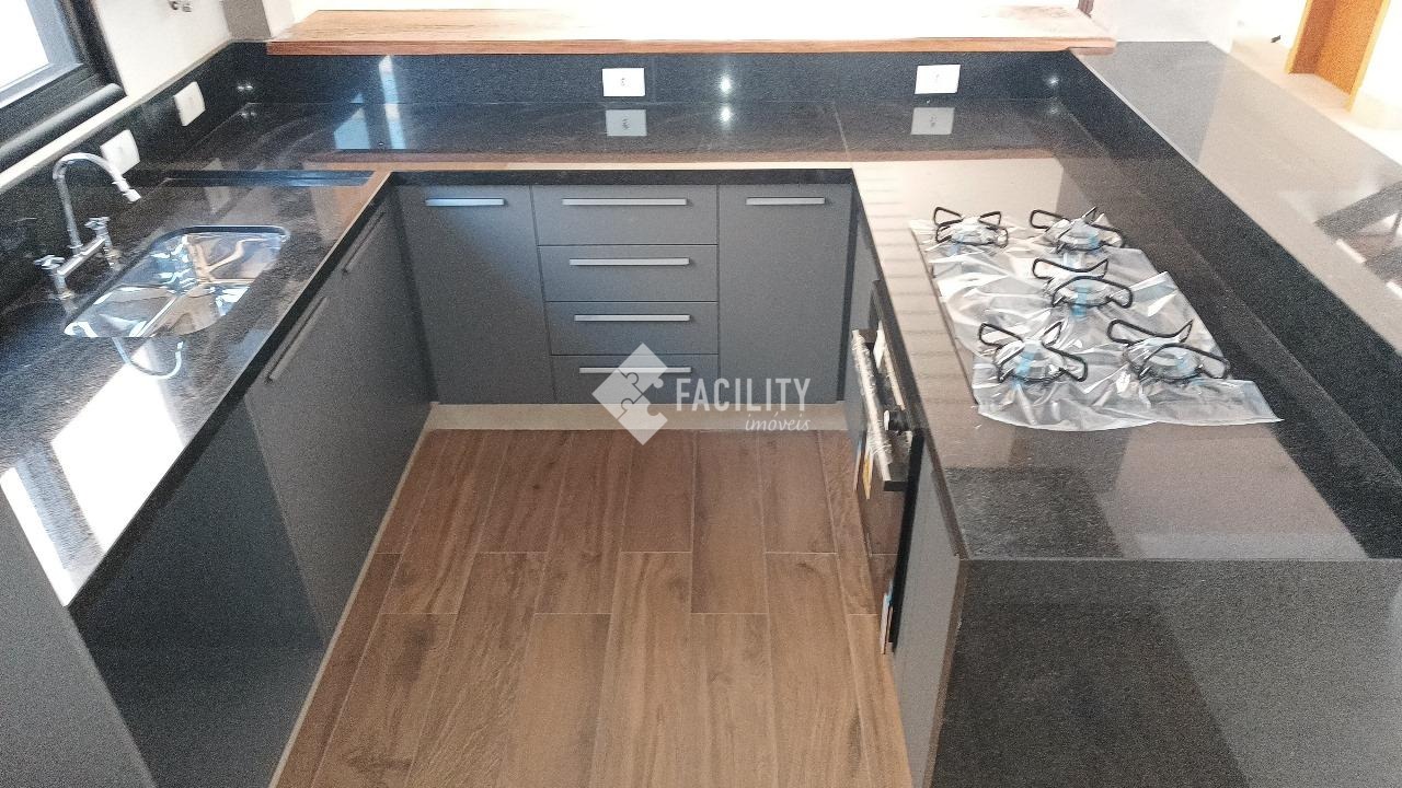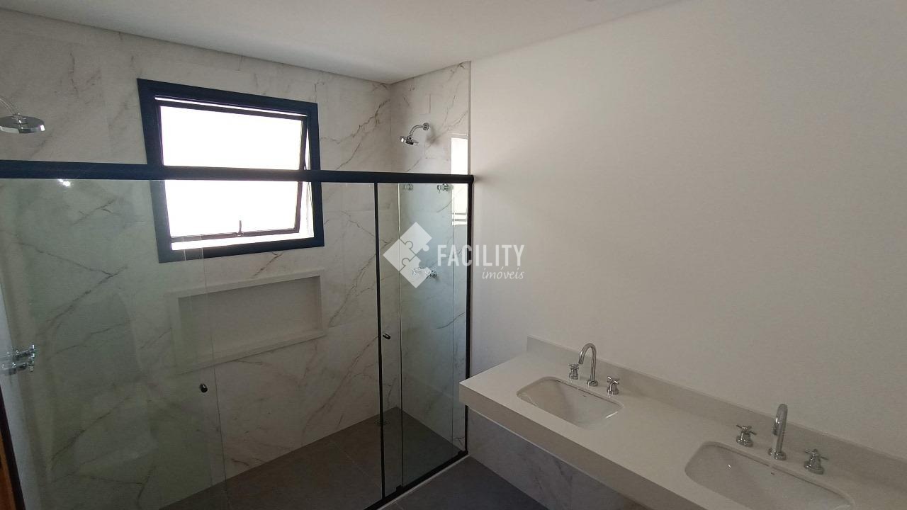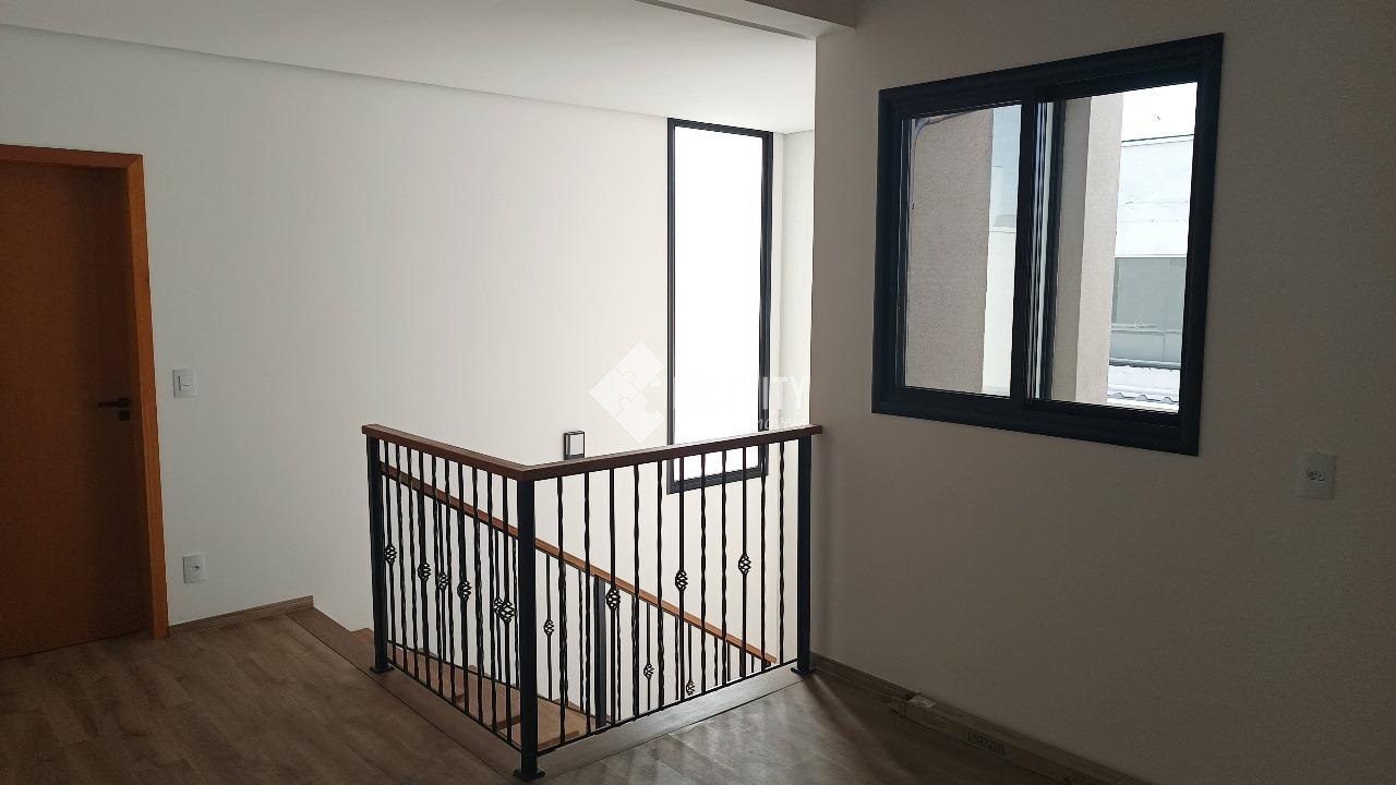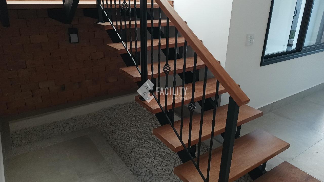 Sobrado novo, com 201m² de área útil e 250m² de área total, projeto moderno, 3 suítes sendo uma com closet, sala dois ambientes, lavabo, cozinha americana, escritório, espaço gourmet e quintal gramado. A casa ainda conta com ótimo acabamento, porcelanato, planejados, ambientes integrados, infraestrutura para ar condicionado, aquecimento solar, piso porcelanato e 4 vagas de garagem.