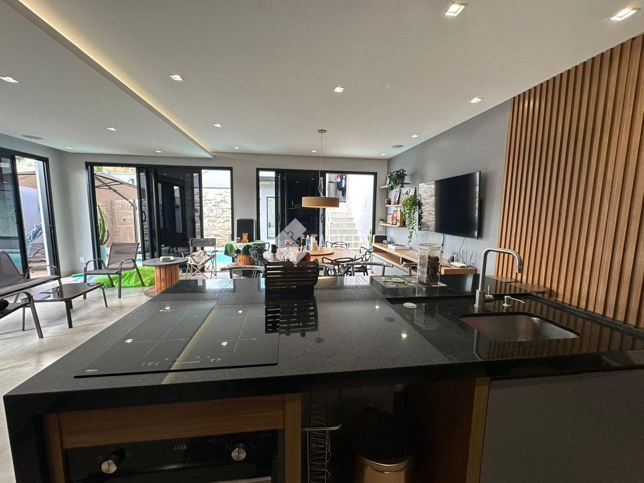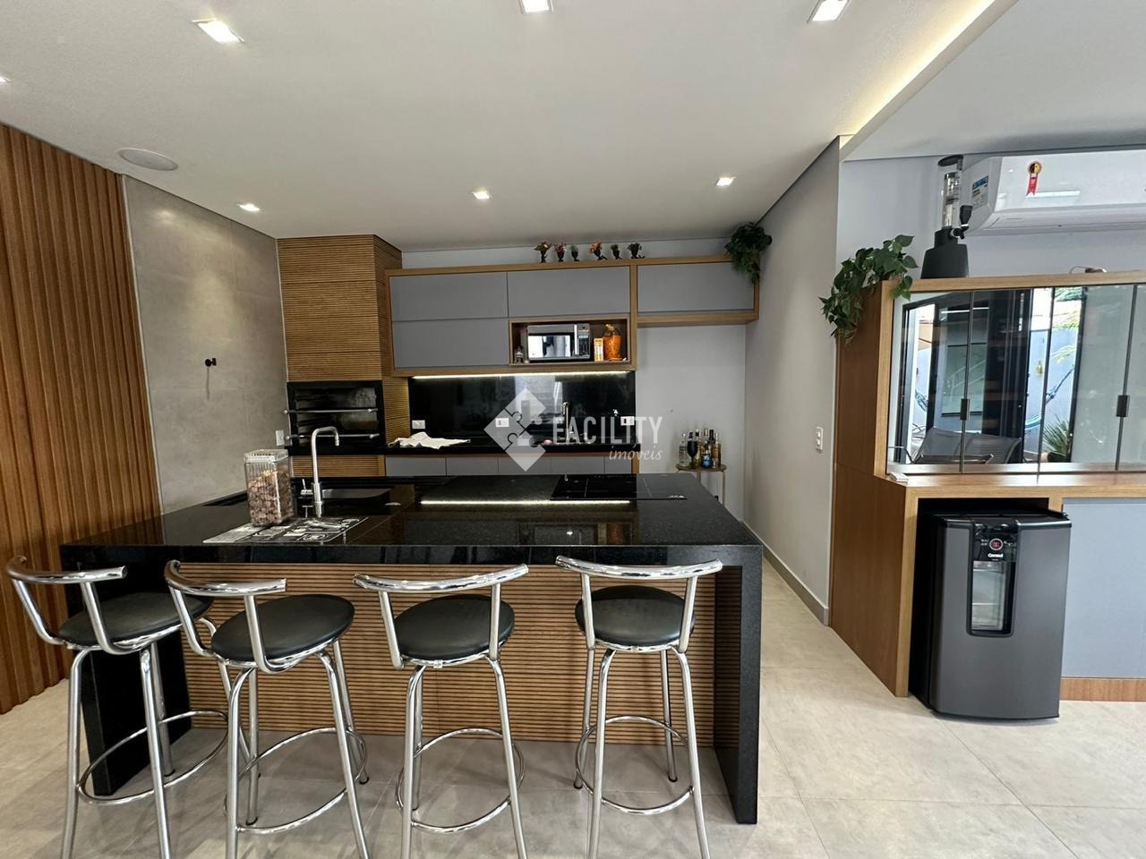 Com 4 dormitórios com ar condicionado em todos os quartos, sendo 3 suítes com ármarios planejados, escritorio planejado, sala de estar, sala de TV com planejado, sala de jantar, bar planejado, cozinha ármarios planejados, lavanderia ármarios planejados, banheiro social, vagas de garagem, Placa solar, 390 m² útil, terrno 480 metors. Com área Gourmet ármarios planejados churrasqueira, ar condicionado, piscina aquecida, sauna, úmida, banheiro, sacada, quintal, segurança 24h.