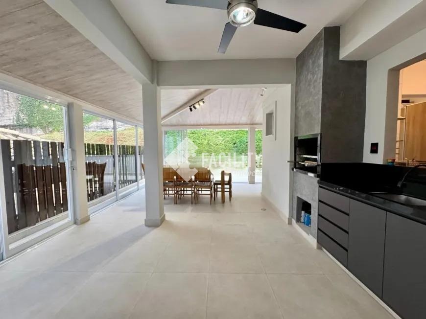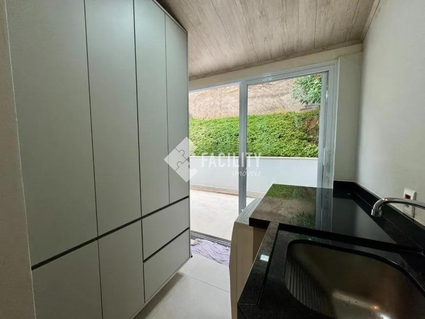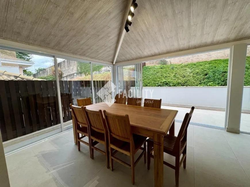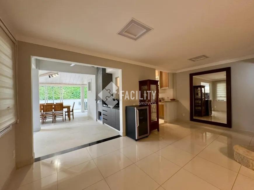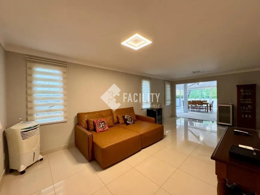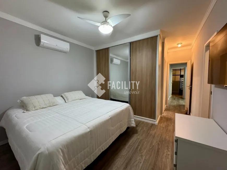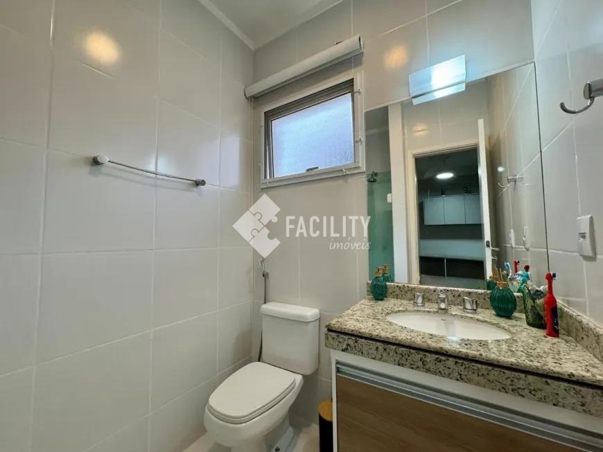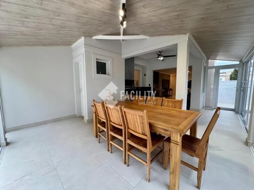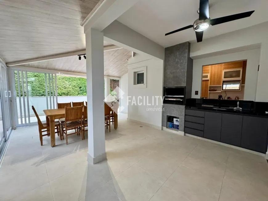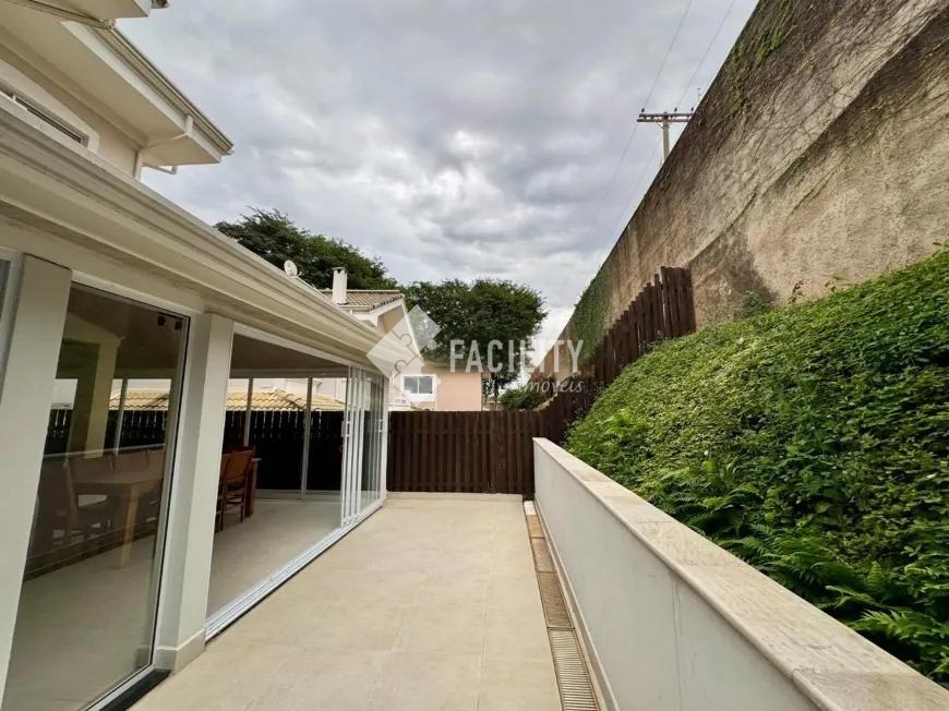 Sobrado com 160m², 03 quartos sendo uma suíte com closet e sacada, sala 3 ambientes com lareira, hall de entrada com lavabo, escritório no piso superior, cozinha americana, área gourmet com fechamento em vidro e integrada a área social, banheiro externo, banheiro social, área de serviço independente e quintal. O imóvel ainda com ótimo acabamento, ar condicionado em todos os dormitórios, quintal com jardim e chuveirão, armários planejados, corredor de acesso lateral, despensa e 3 vagas de garagem.
