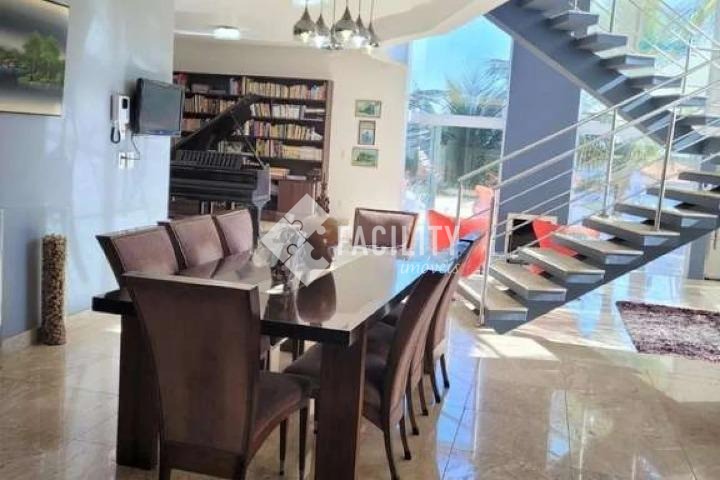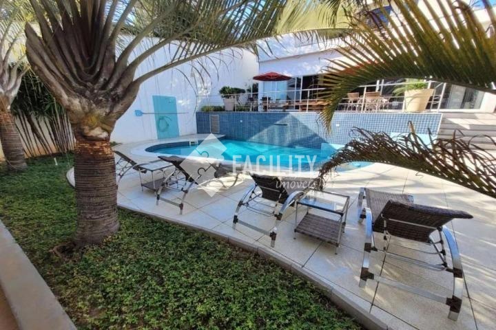 Com 562m² de área construída em um amplo terreno de 1.050m², o imóvel oferece estrutura completa e bem distribuída, com 4 suítes, 6 salas, lavabo, escritório, cozinha planejada estilo americana, despensa, dormitório e banheiro de serviço, além de edícula. Conta com sistema de segurança, reuso de águas pluviais, jardim com paisagismo e árvores frutíferas, além de vagas para até 14 veículos. Na área externa, destaque para o espaço gourmet com churrasqueira, piscina aquecida, varanda e um quintal encantador. O imóvel também está equipado com ar-condicionado, banheira de hidromassagem, móveis de escritório, geladeira, fogão, portas amplas e muito mais — pronto para oferecer funcionalidade e bem-estar em qualquer finalidade.