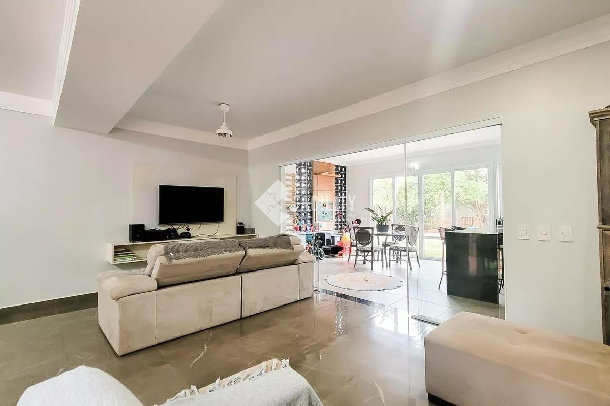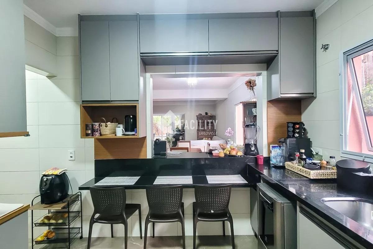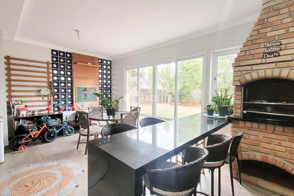 A casa possui 280m² de construção, sala 3 ambientes, cozinha em conceito aberto, despensa, lavanderia reservada, 4 banheiros e lavabo. A área externa conta com quintal gramado, espaço gourmet completo e 5 vagas de garagem, garantindo conforto para toda a família.