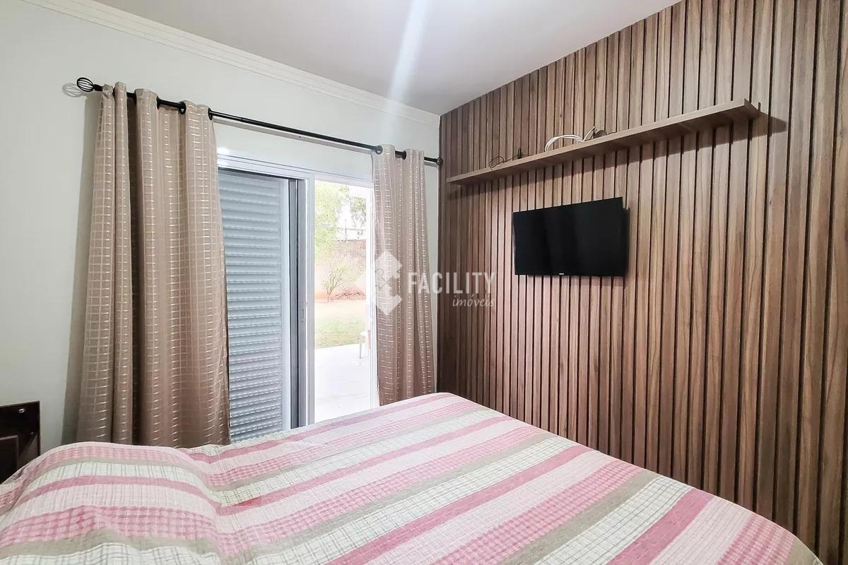 O condomínio oferece lazer completo e segurança 24 horas, com piscina adulto e infantil, quadra poliesportiva, campo de futebol, playground, salão de festas, churrasqueira, trilhas para caminhada e ampla área verde preservada.