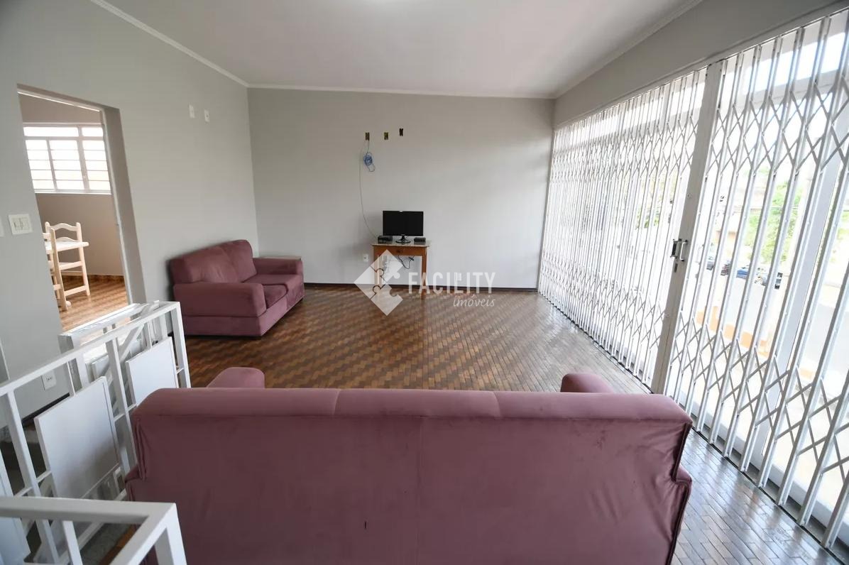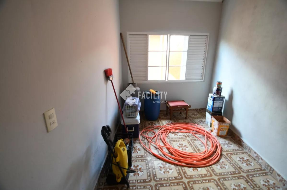 Casa com três quartos sendo uma suíte, três salas, quatro banheiros no total, cozinha planejada, área de serviço, área de lazer com churrasqueira, cinco vagas de garagem, quintal amplo e aconchegante.
