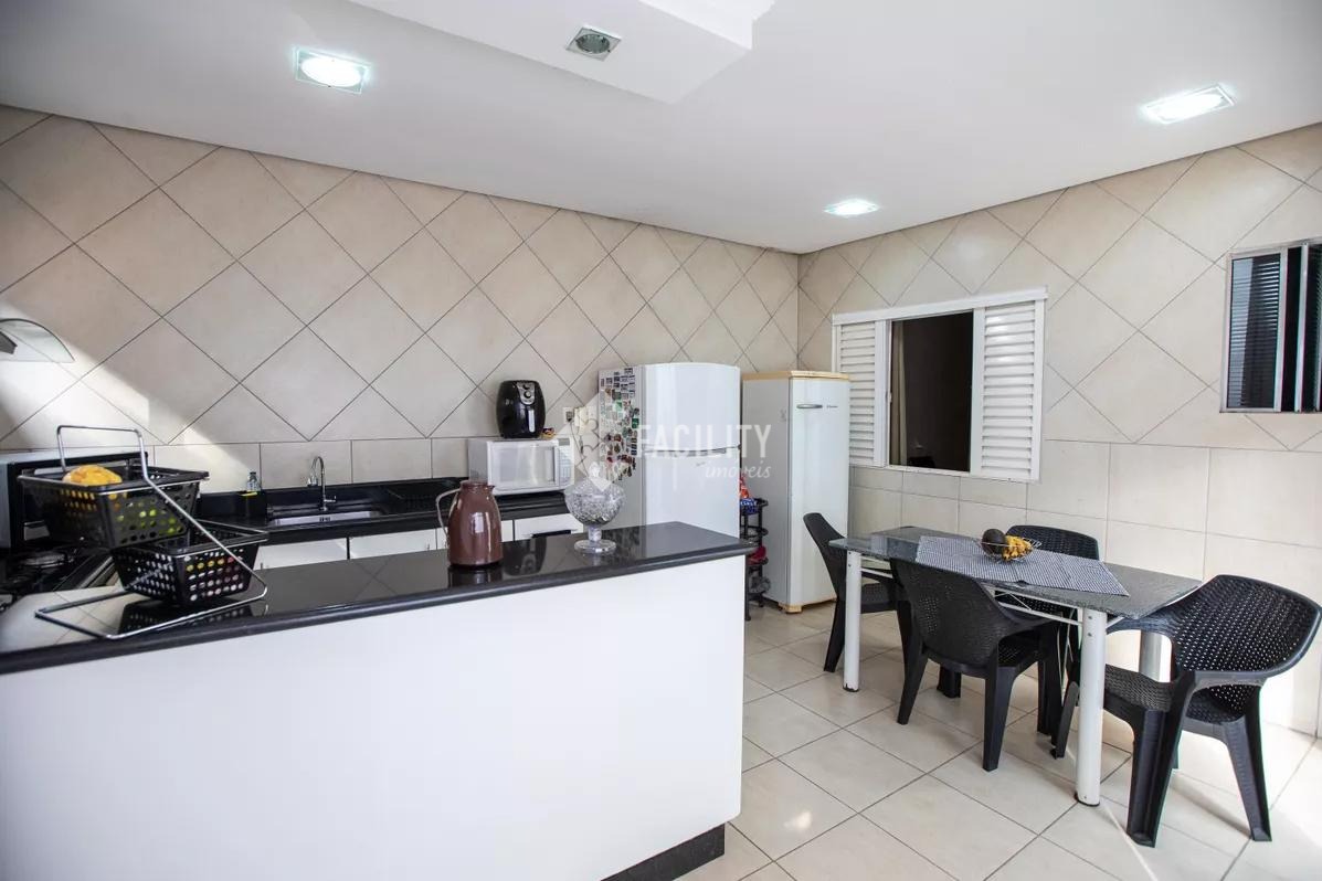 Casa com três quartos sendo uma suíte, sala ampla, cozinha espaçosa com armários, área de serviço, escritório, três banheiros no total, vaga de garagem para até três carros. Localização excelente próximo a supermercado, academia, padaria e outros comércios.