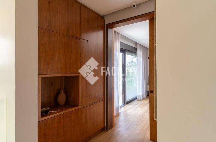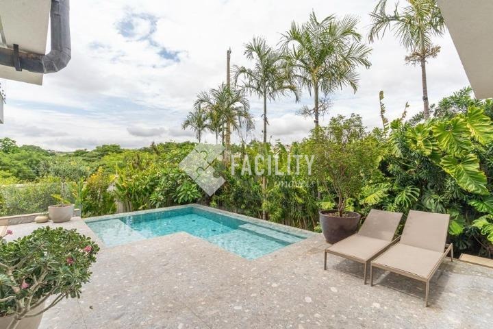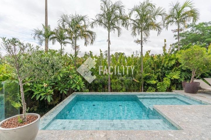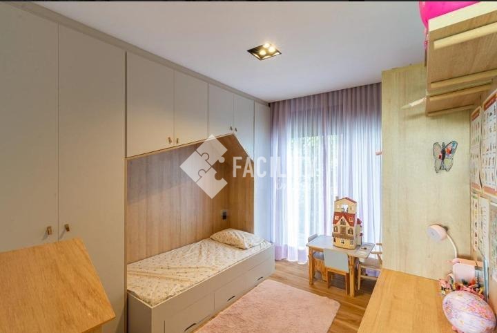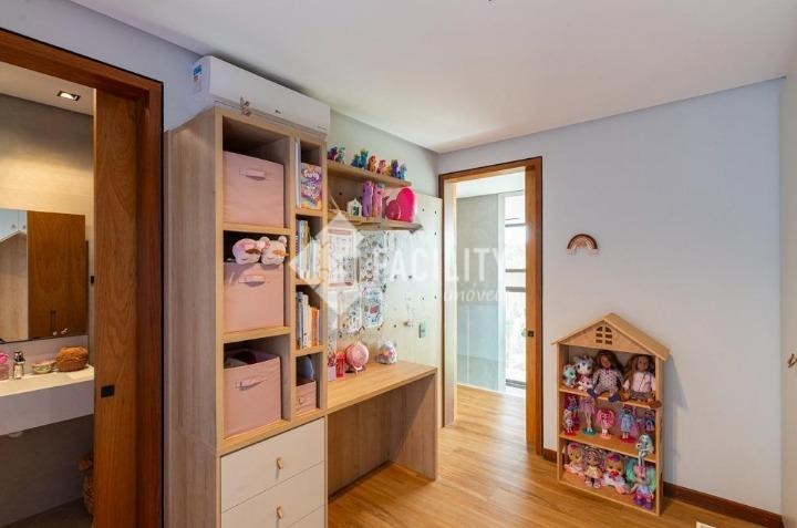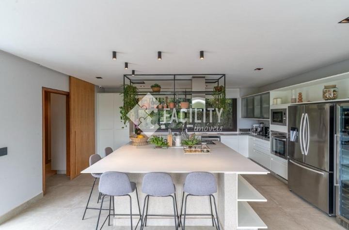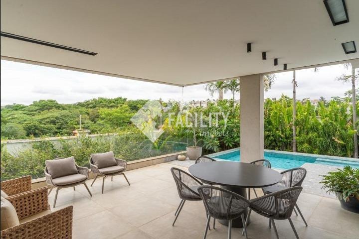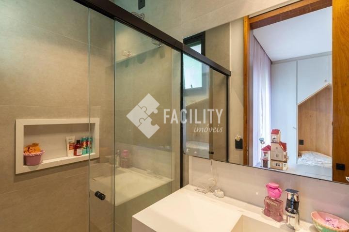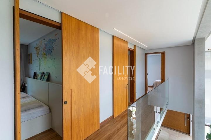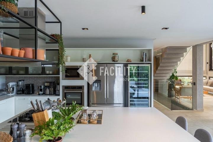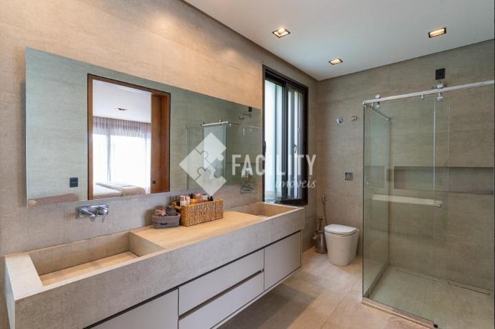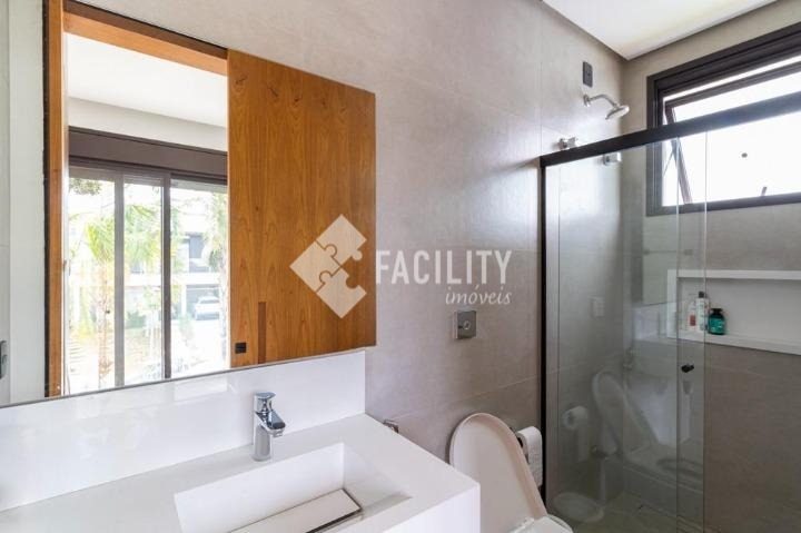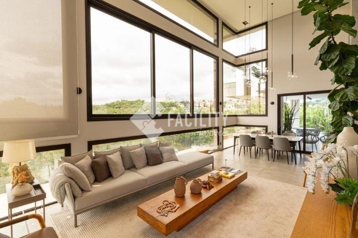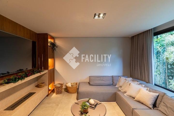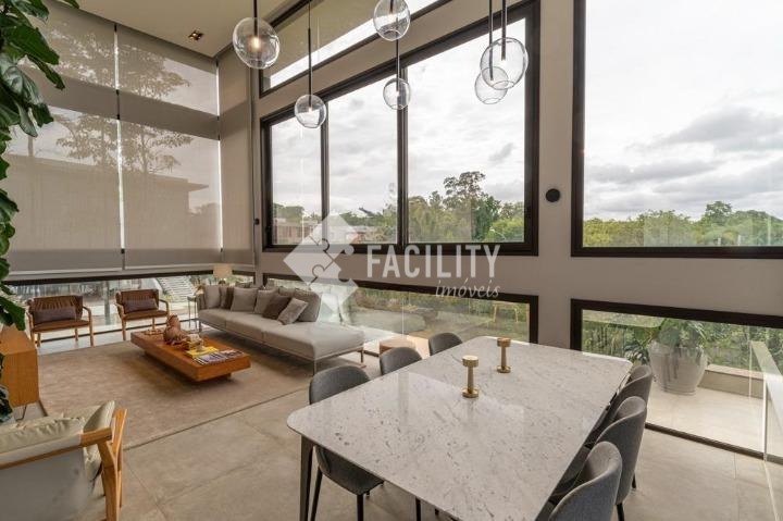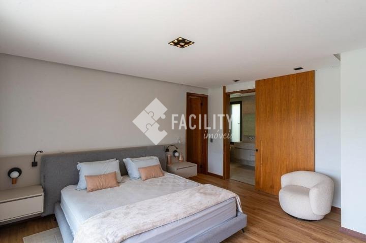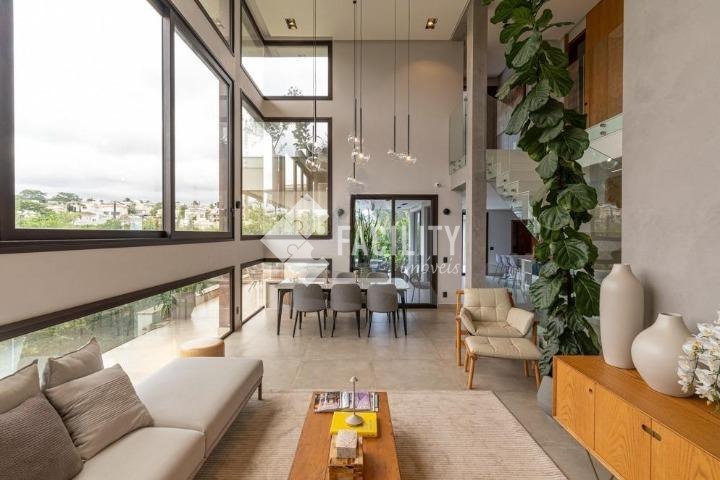 Casa com quatro quartos sendo todos suítes, sala de estar e sala de jantar integradas, escritório planejado, home theater, lavabo, cozinha integrada com ilha, área de serviço planejada com deposito, piscina aquecida, sala de banho e terraço privativo com vista permanente para mata, garagem privativa e coberta para 4 veículos, sala de brinquedos, quintal e espaço para canil e horta.