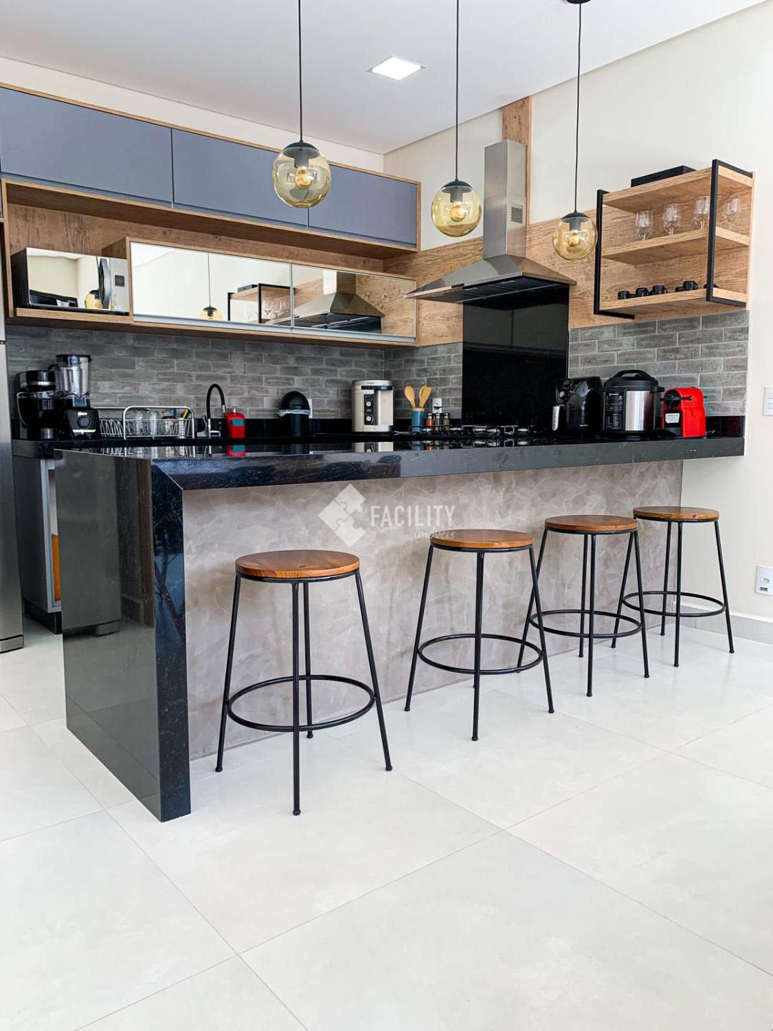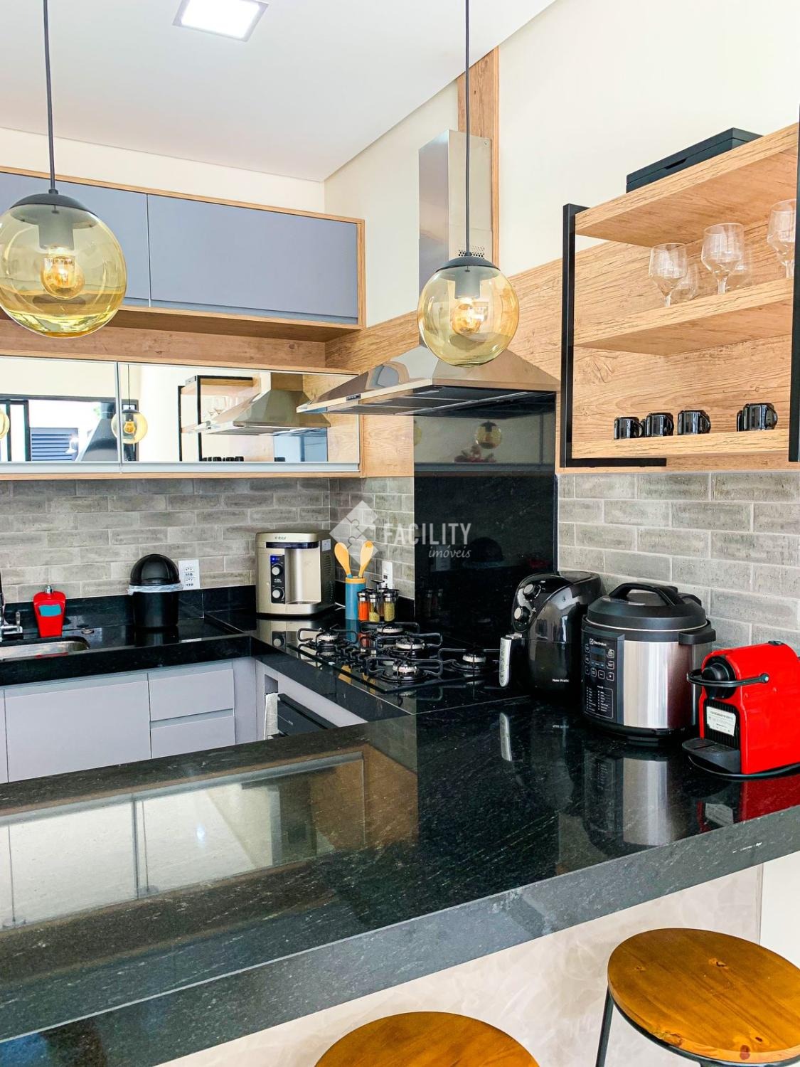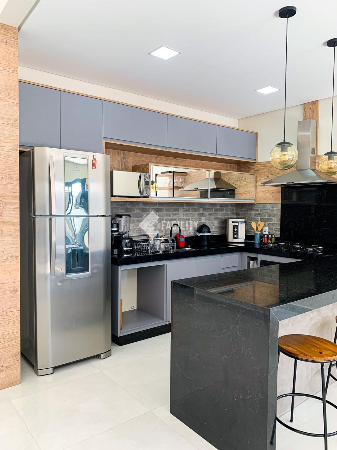 - Cozinha com Móveis Planejados, Cooktop, Forno e Coifa (todos da marca Brastemp). Iluminação com Sanca de Gesso e Led.