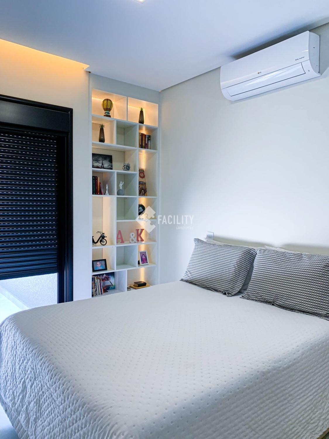 - Dispõe de 3 suítes, com Móveis Planejados e Painel para TV, Ar Condicionado, Mesa de Trabalho, Persianas Automatizadas com Blackout e Cortinas. Internet Cabeada. Iluminação com Sanca de Gesso e Led. Banheiros com Espelhos, Box e Armários Planejados.