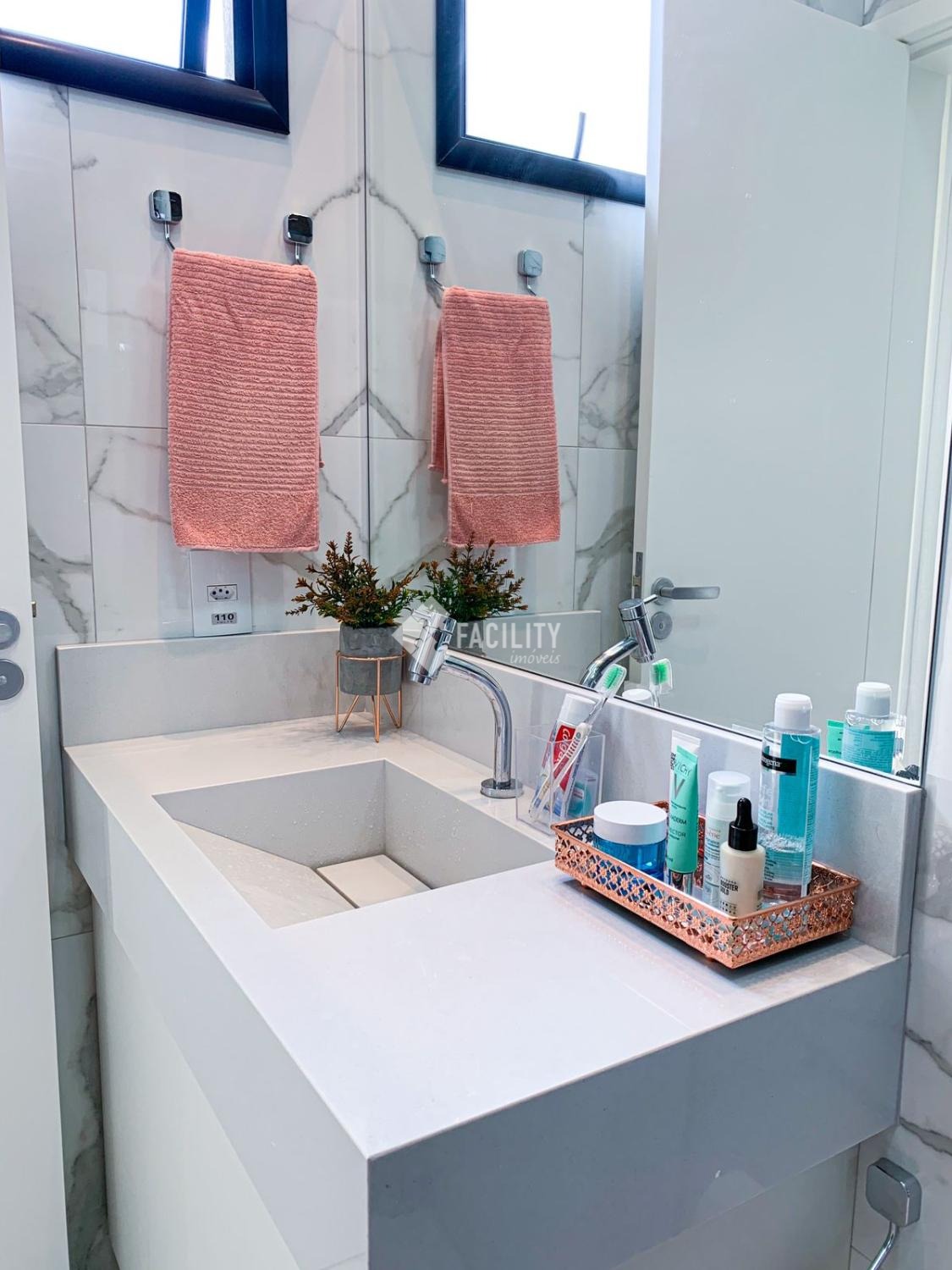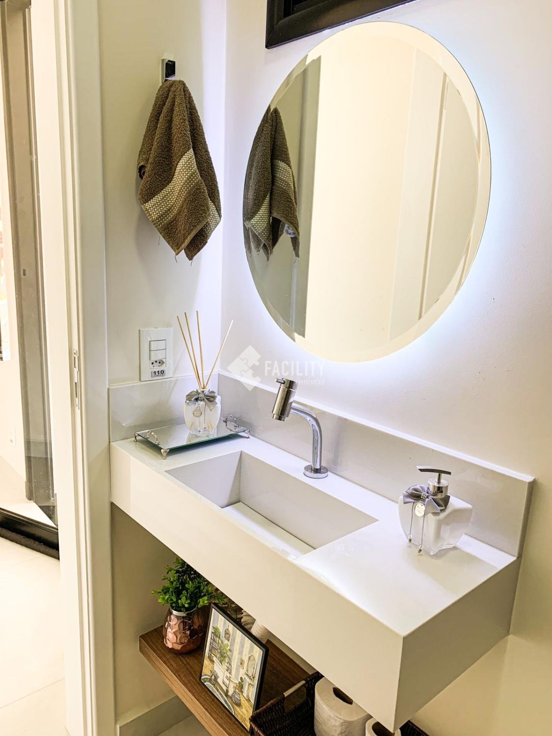 - Lavabo com Espelho em Led e Prateleiras Decorativas.