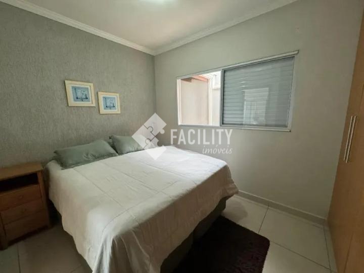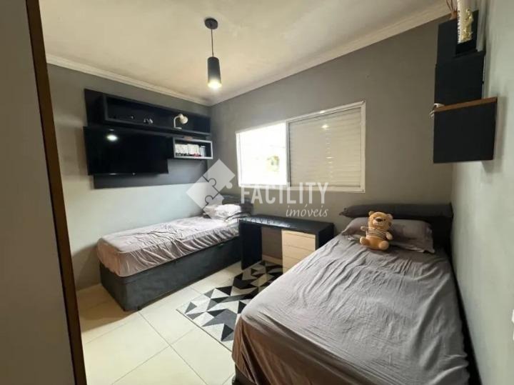 Casa em bolsão de segurança no Residencial Terras do Barão, com 125m² de área construída, 3 quartos sendo 1 suíte, quintal com churrasqueira e energia solar.