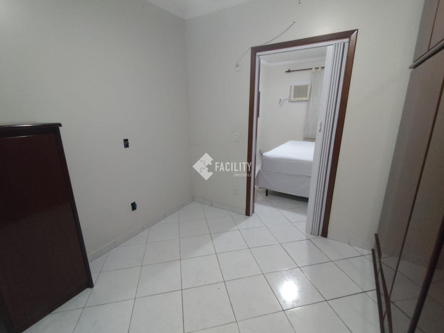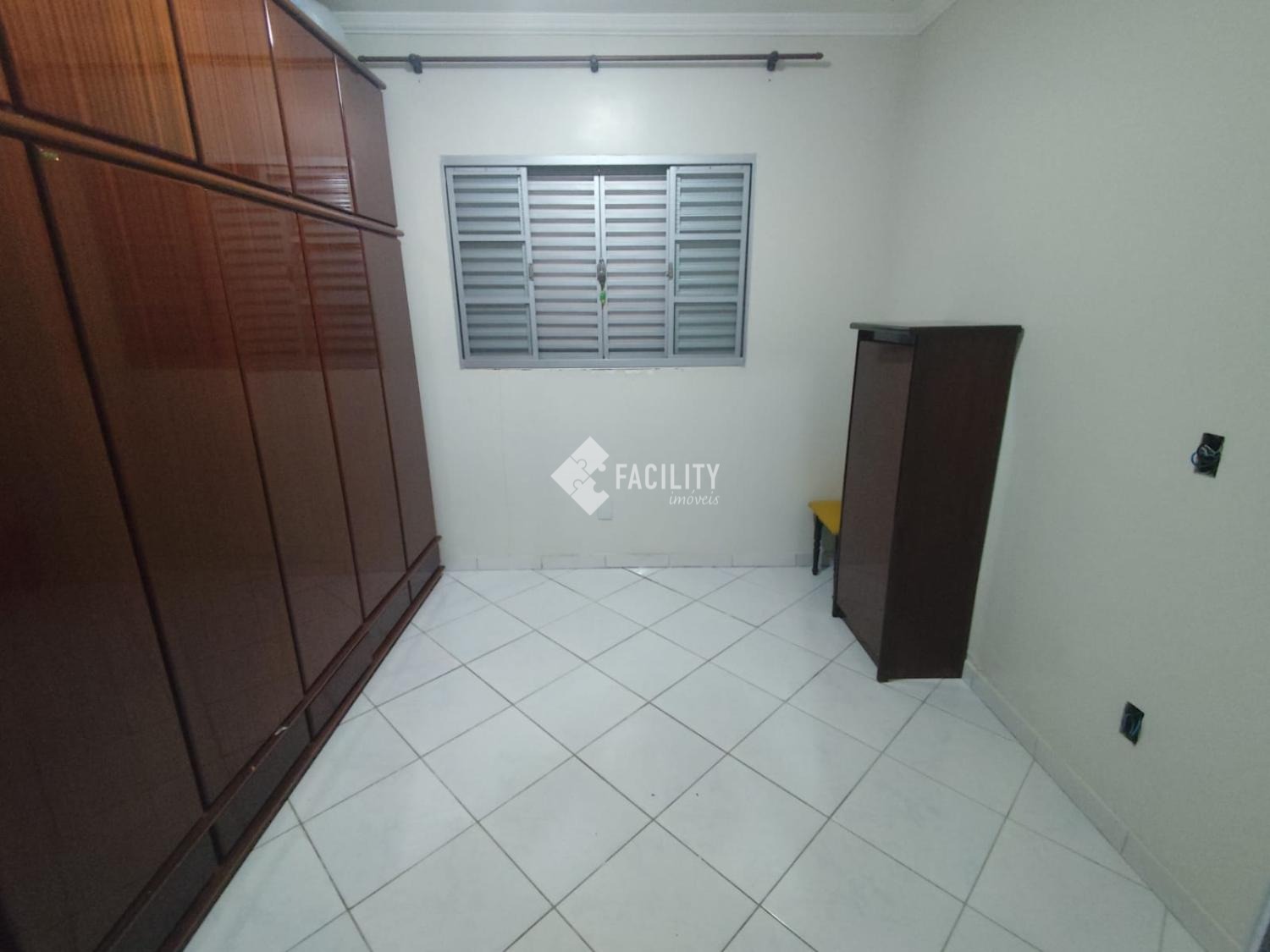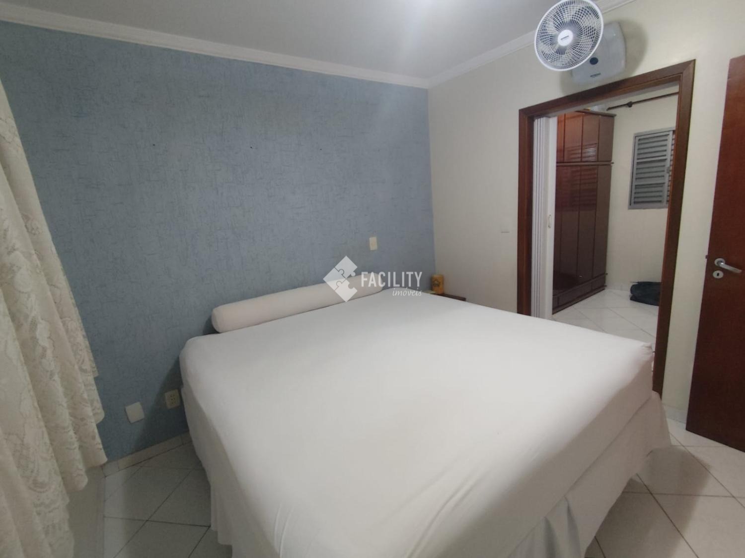 1 suite com Closet que pode ser reversível para o terceiro quarto. O banheiro possui azulejos até o teto, box vidro, ducha higiênica, pia granito e cuba inox. Dois quartos possuem Ar Condicionado e painel grafiato.