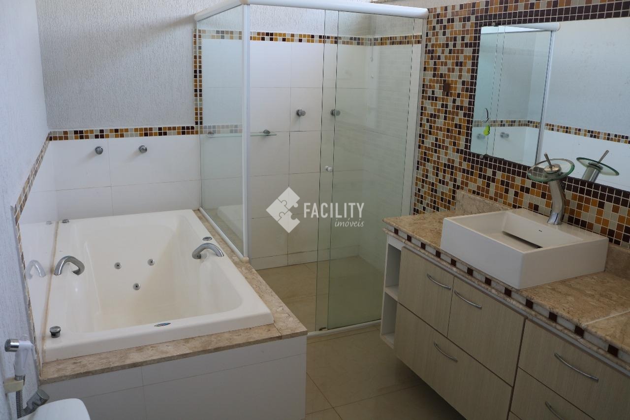 Lindo sobrado de 262,00 metros, com acabamento em porcelanato, 03 suítes, sendo 01 máster com closet e hidromassagem, 02 amplas sacadas, sala de estar, sala de jantar, sala de TV, cozinha, despensa, lavanderia, banheiro para empregada, área gourmet com churrasqueira, amplo quintal com gramado, banheiro externo, escritório com saída para a garagem e 04 vagas de garagem para carro, sendo 02 cobertas.