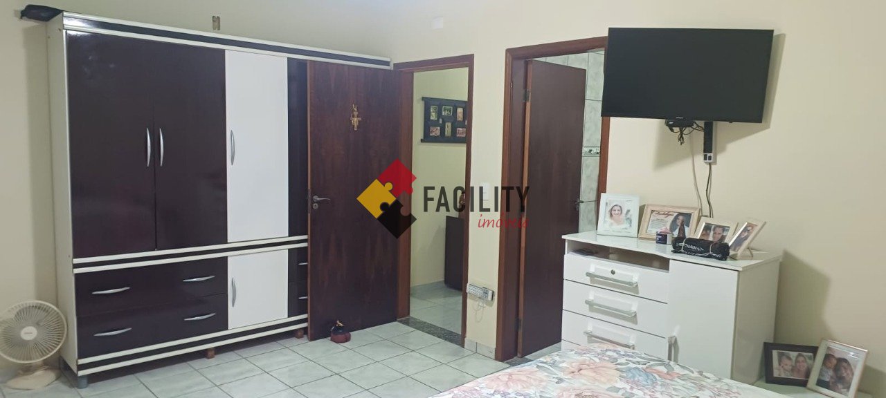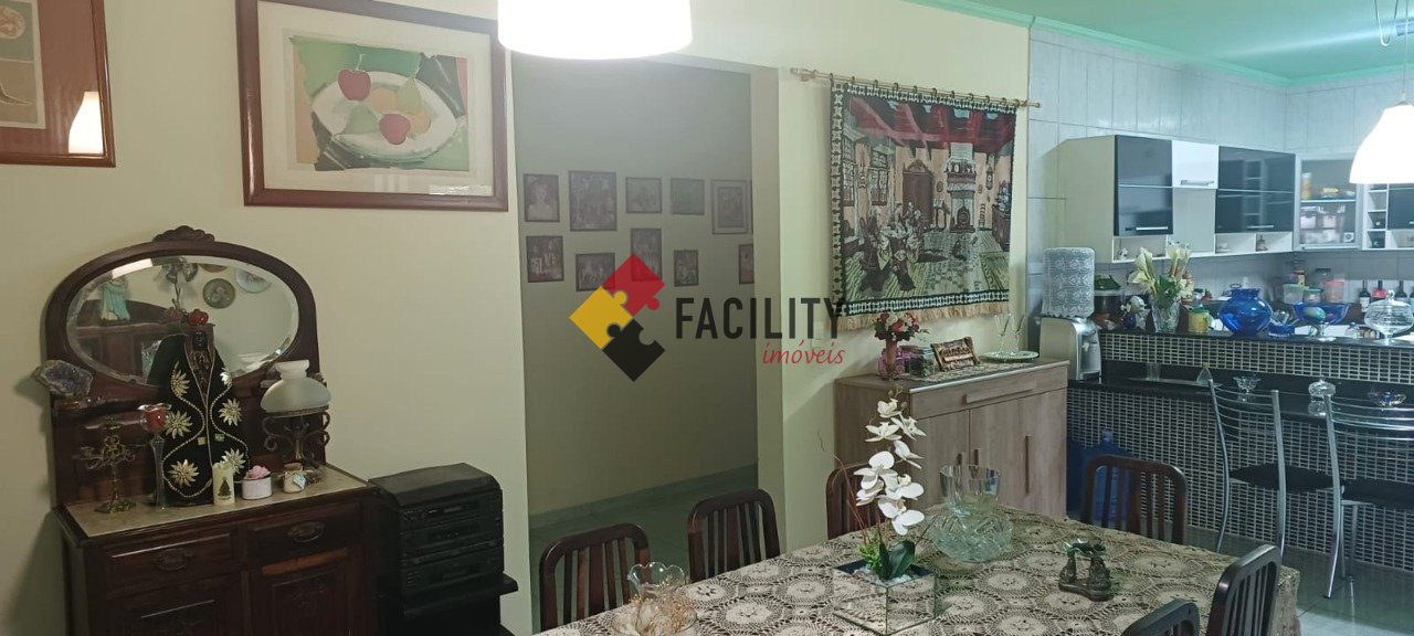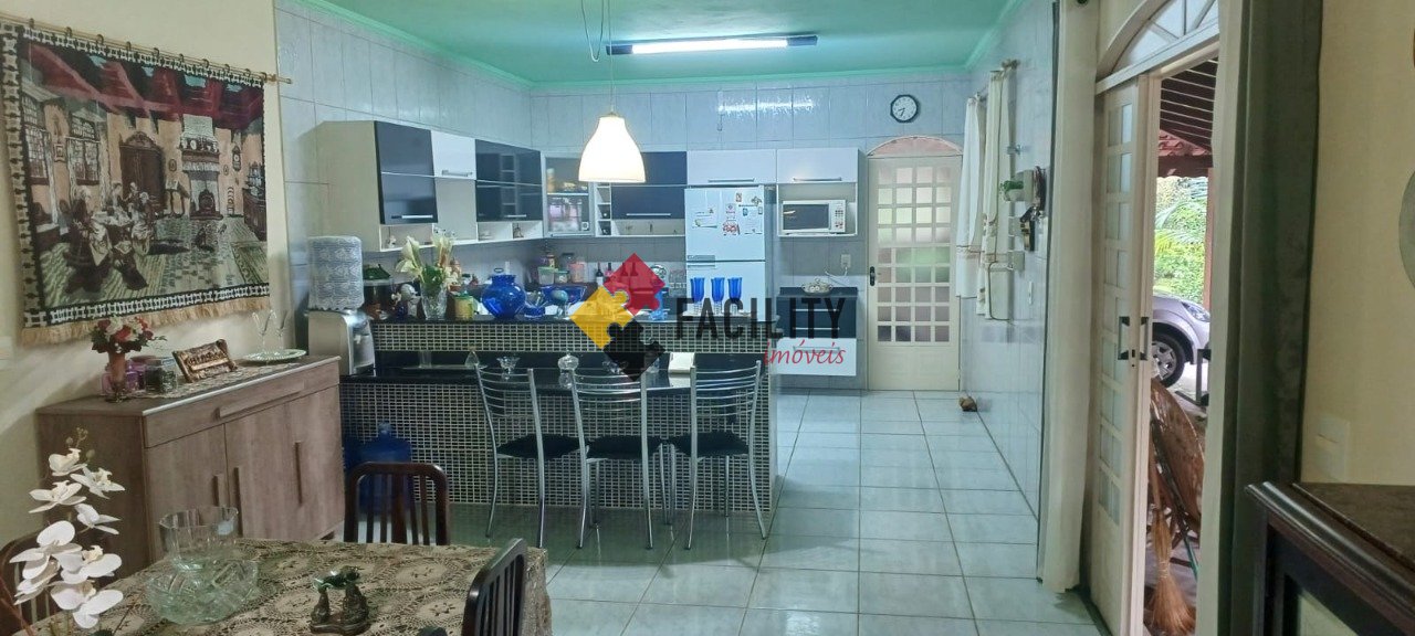 Casa: 3 dormitórios (1 suíte), sala 2 ambiente (Estar/Jantar) com cozinha americana (c/ armários planejados), banheiro e varanda.