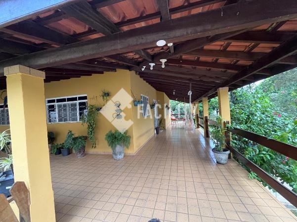 Uma varanda charmosa e acolhedora envolve a casa, sendo o espaço perfeito para momentos de descanso e contemplação da natureza. A propriedade conta com uma ampla área de estacionamento, com vagas de garagem para até 9 carros, garantindo comodidade para todos.