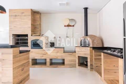 1 edícula completa com churrasqueira, forno a lenha e forno de pizza + 2 banheiros e 1 quarto.