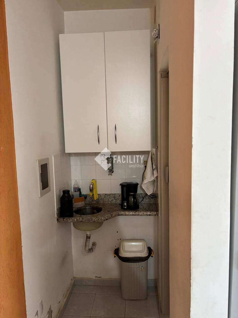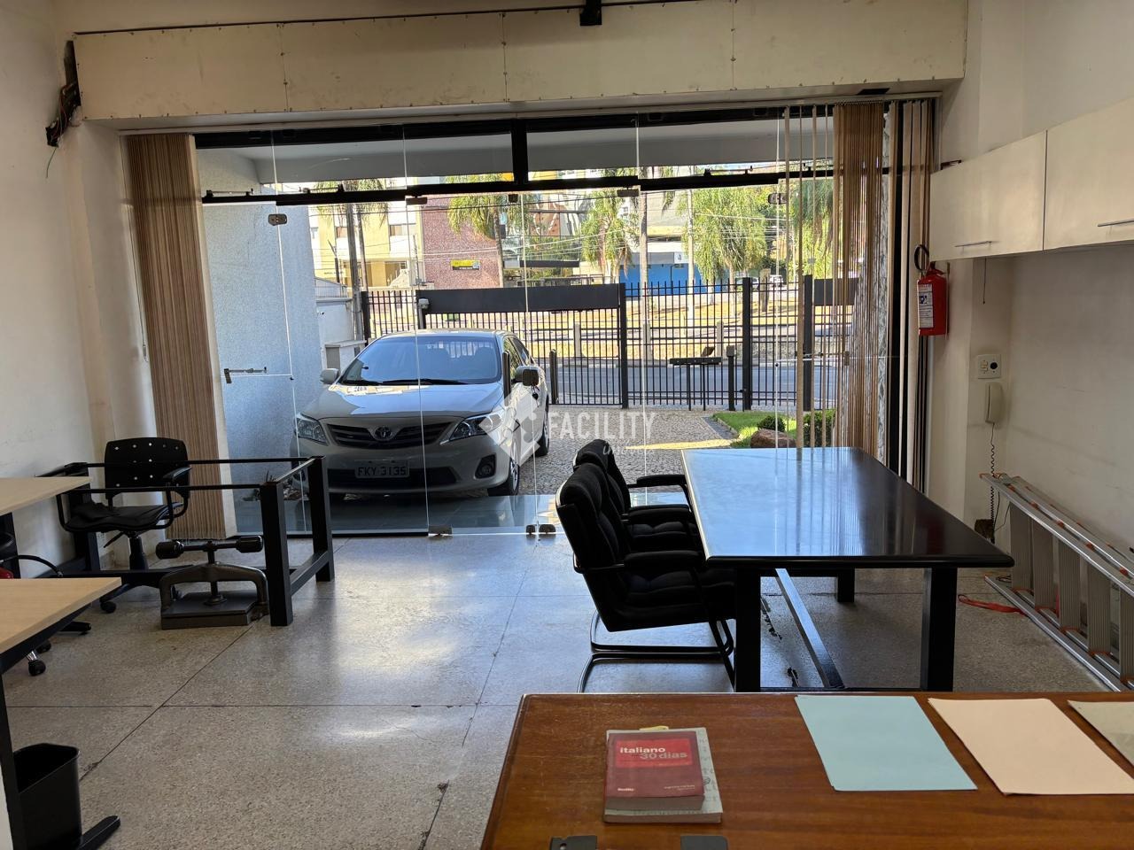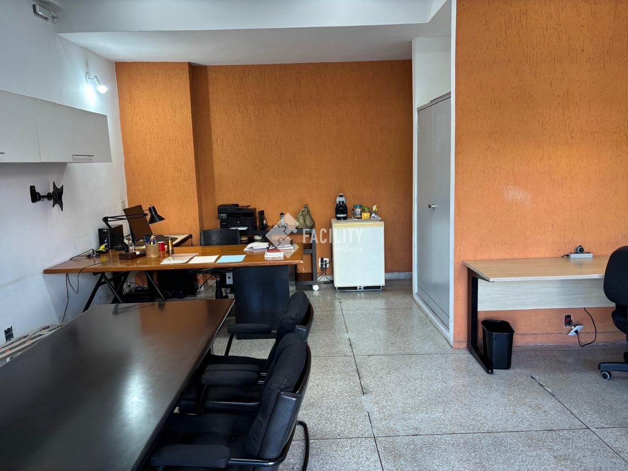 Sala fica no pavimento térreo de edifício residencial, com acesso totalmente independente. Sala, com uma pequena copa e banheiro. Também tem duas vagas para estacionamento em frente, disponíveis exclusivamente para a loja, das 7h às 19h de segunda a sexta feira e uma vaga aos sábados, das 8h às 12h.
