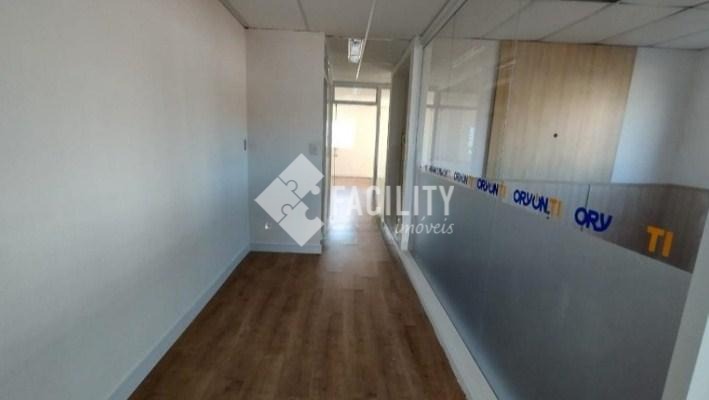 piso é laminado e as divisórias das salas são em vidro Blindex, proporcionando sofisticação e integração visual. São 4 salas nesse andar, 2 banheiros e 1 varanda em uma das salas, voltada para a avenida, oferecendo ótima visibilidade e ventilação.