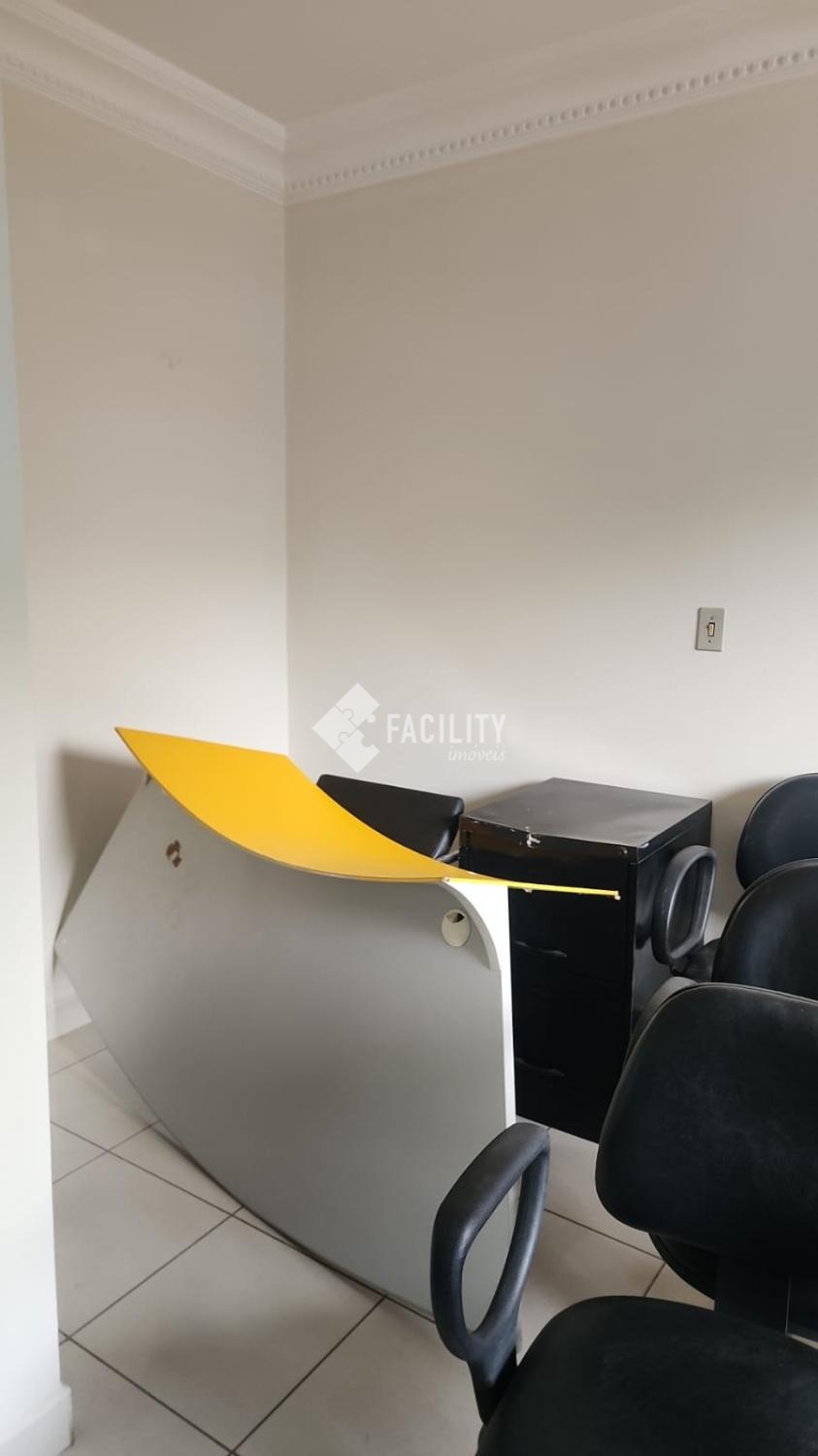 Salão amplo com quatro salas de mais ou menos 20m² cada uma, copa com pia, sala de recepção, fraldário, banheiro masculino e feminino, e dispensa.